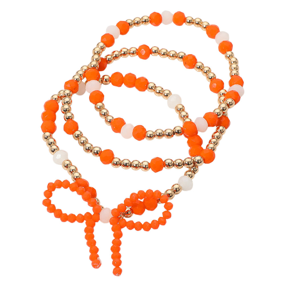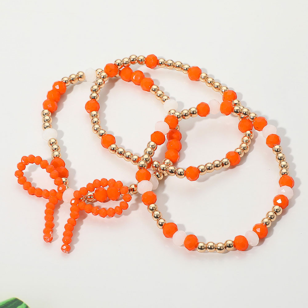 3PCS - Sports Team Theme Colored Bow Accent Faceted Beaded Stretch Multi Layered Bracelets