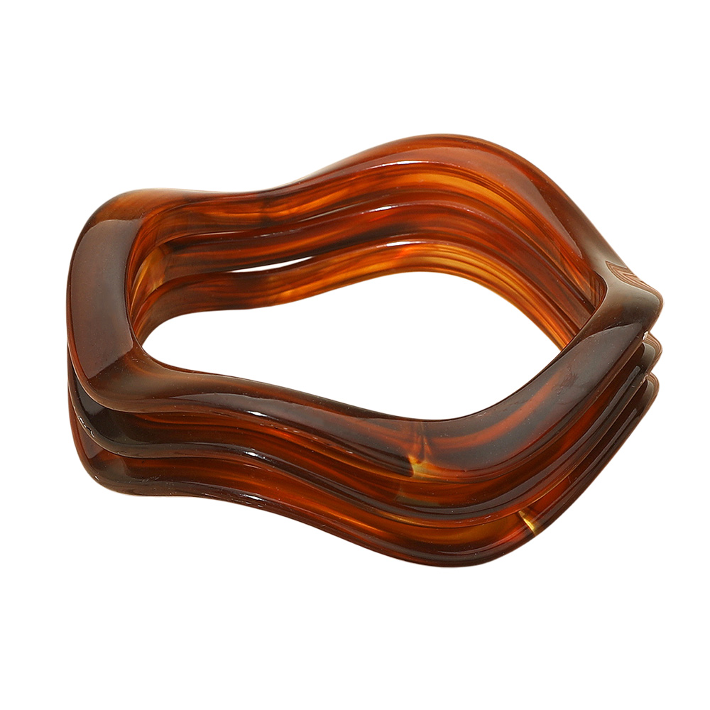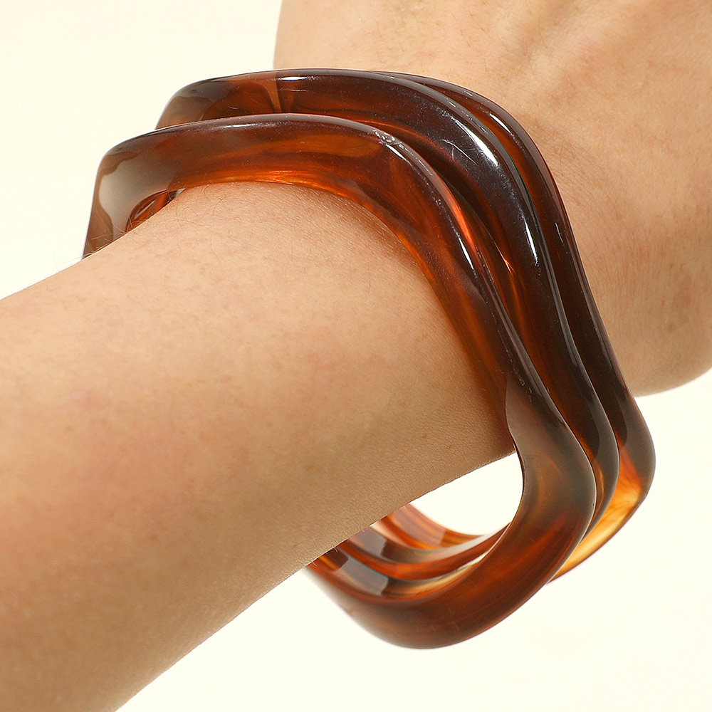 Details • Size : 1" H, 2.5" D • Add a bold twist to your look with this 3-piece resin bangle set featuring a unique wavy design. Lightweight and stackable, these bangles bring modern flair to casual or dressy outfits, making them the perfect fashion-forward accessory for everyday wear or gifting.