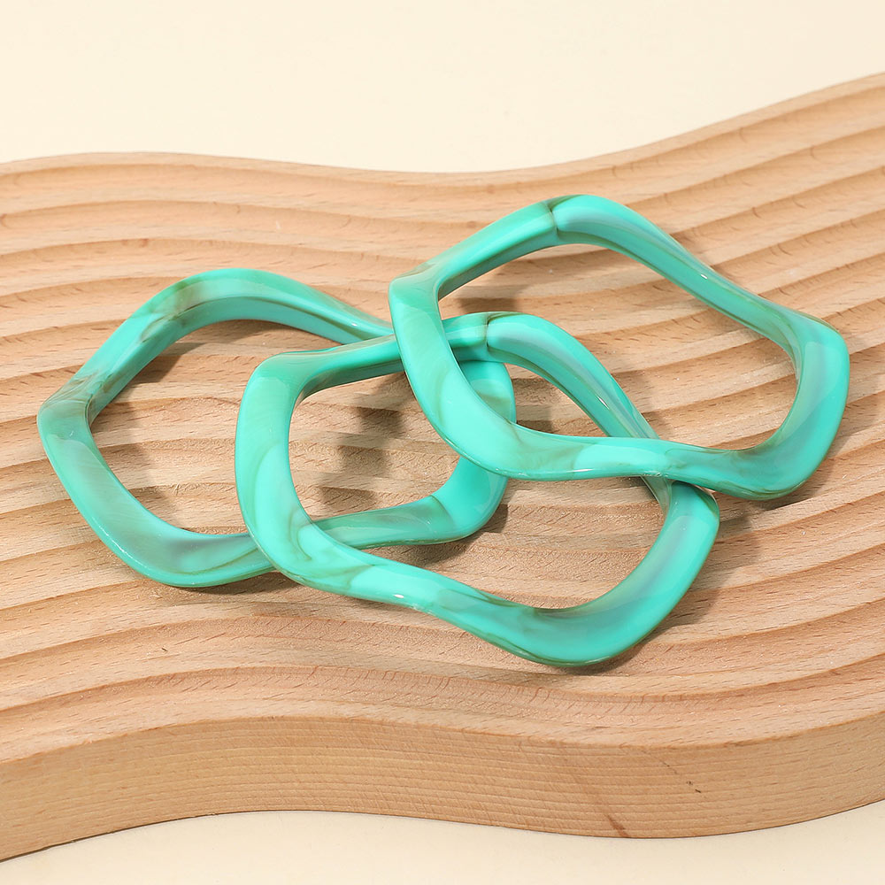 Details • Size : 1" H, 2.5" D • Add a bold twist to your look with this 3-piece resin bangle set featuring a unique wavy design. Lightweight and stackable, these bangles bring modern flair to casual or dressy outfits, making them the perfect fashion-forward accessory for everyday wear or gifting.