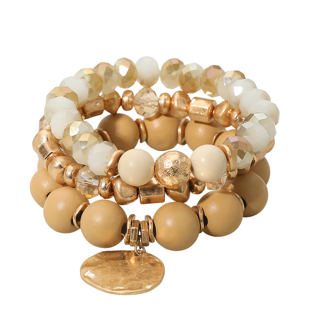 Details • Size : 2.25" H • Stretchable • Elevate your accessories with this three-piece beaded bracelet set, featuring a mix of smooth and faceted beads for added texture. A round charm adds a stylish finishing touch. Perfect for stacking together or wearing individually to complement casual or dressy outfits. • Lead and Nickel Compliant