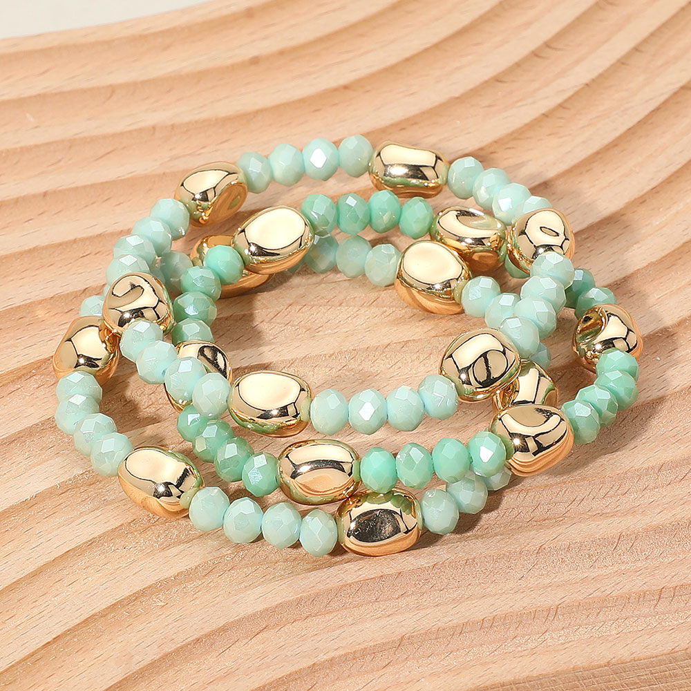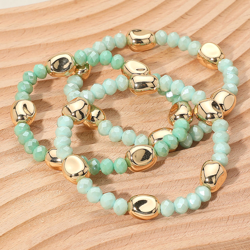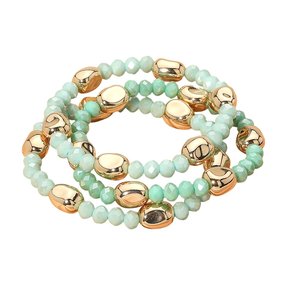 3PCS - Worn Metal Pebble Beaded Stretch Multi Layered Bracelets