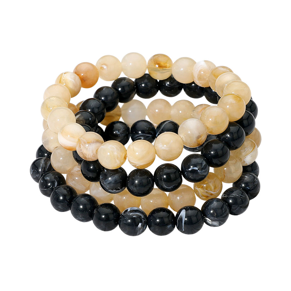 4PCS - Marbled Beaded Stretch Multi Layered Bracelets