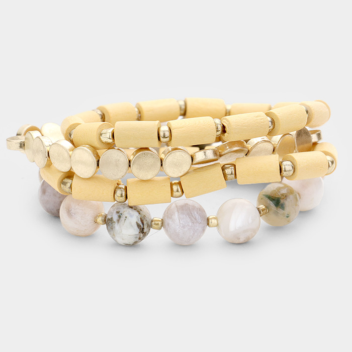 4PCS - Semi Precious Wood Bead Stretch Bracelets