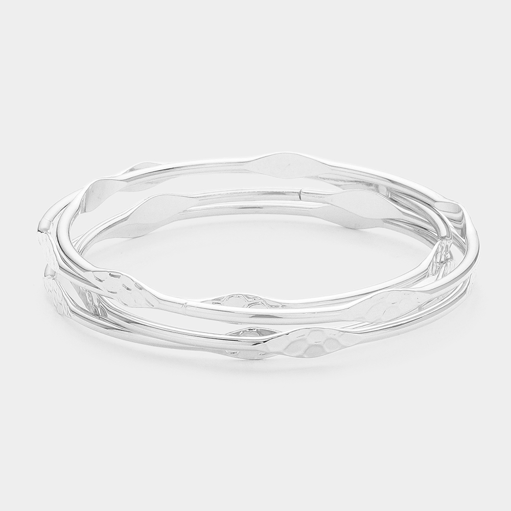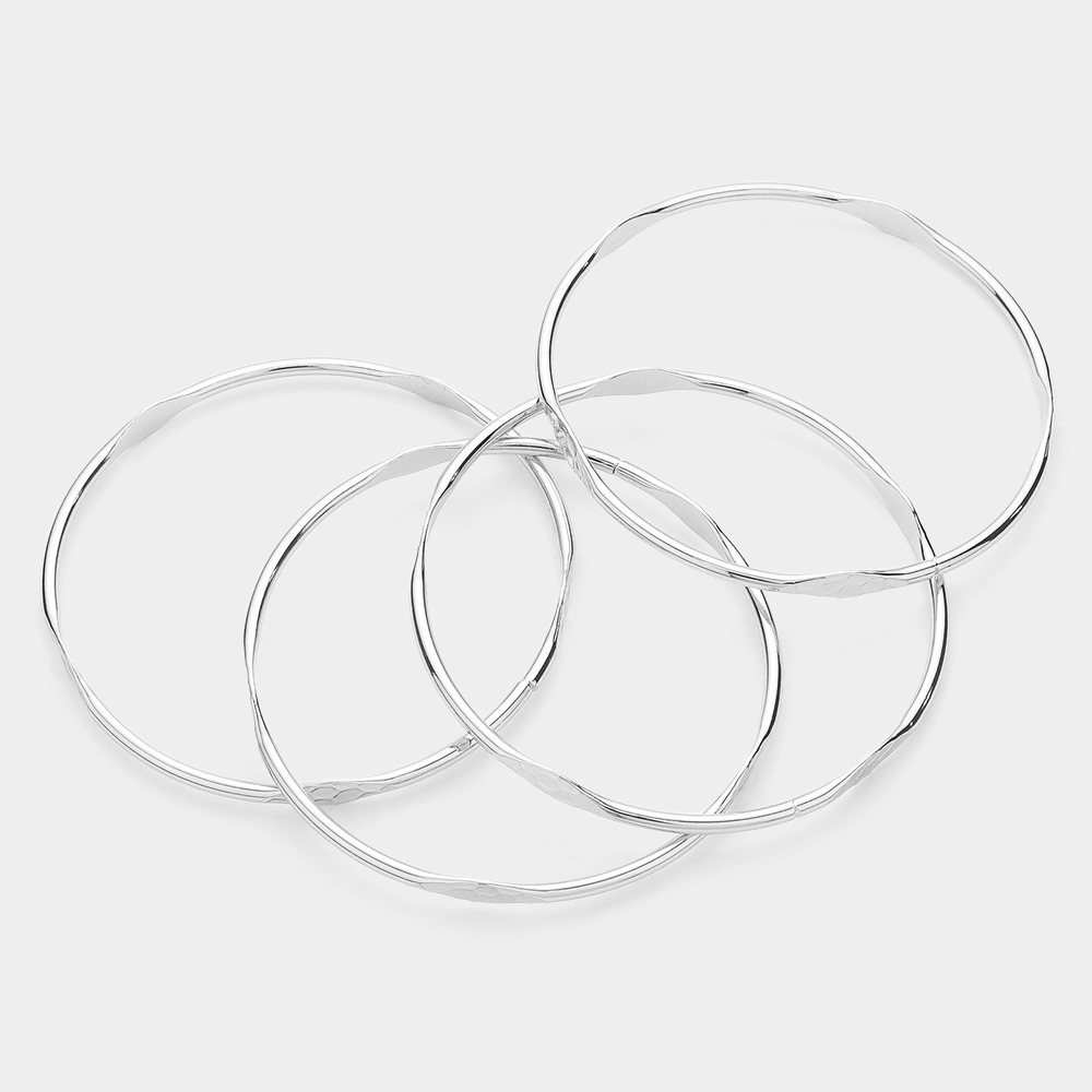 4PCS - Textured Metal Pointed Multi Layered Bangle Bracelets