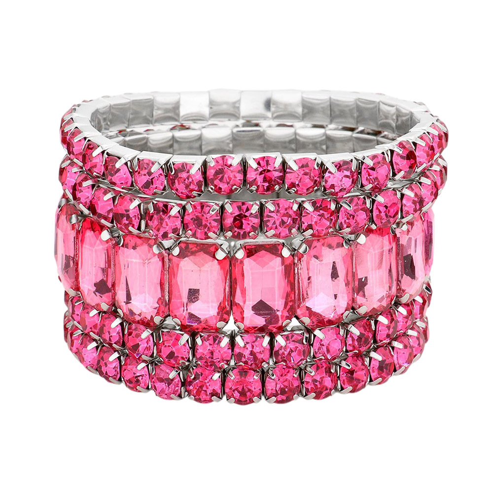 5PCS - Emerald Cut Round Stone Stretch Evening Bracelets
