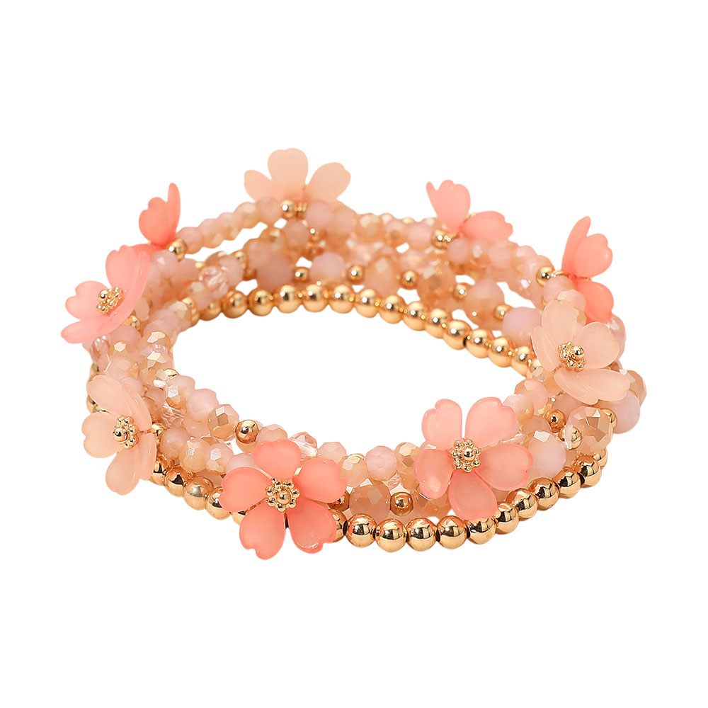 5PCS - Floral Faceted Beaded Stretch Multi Layered Bracelets