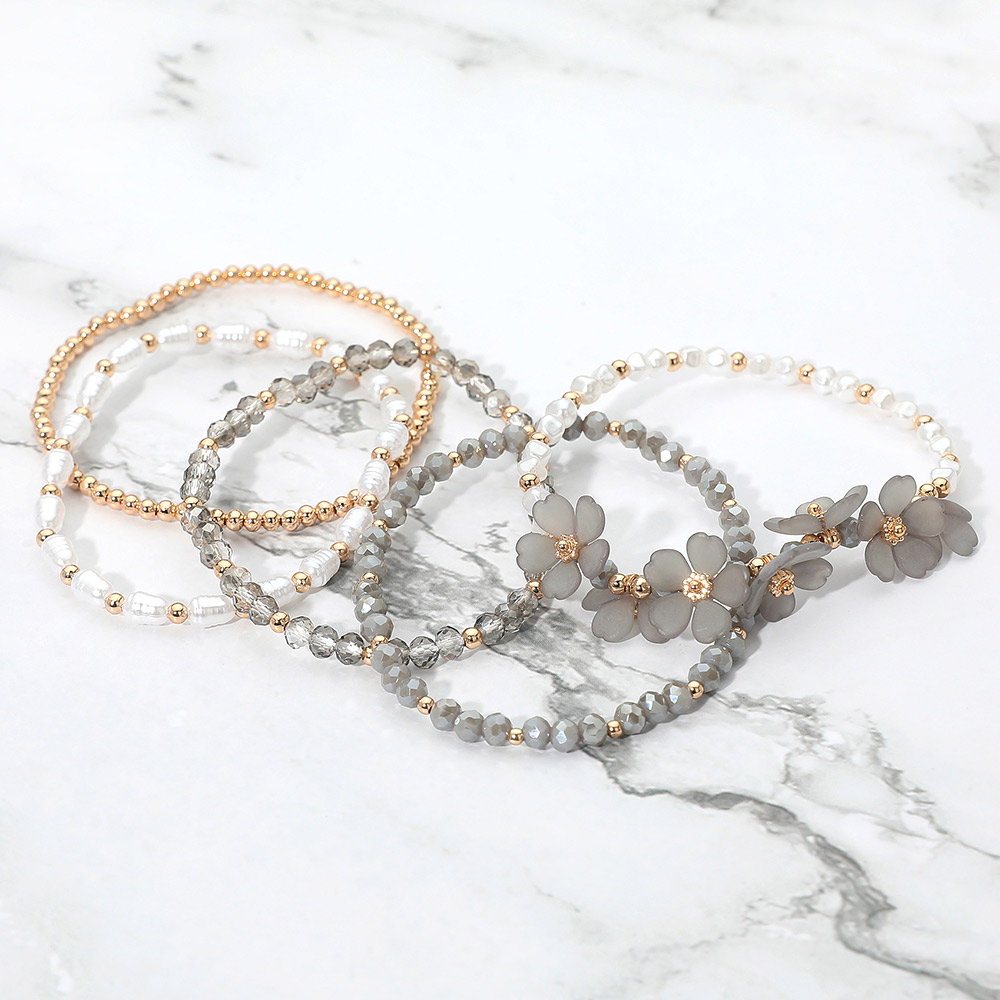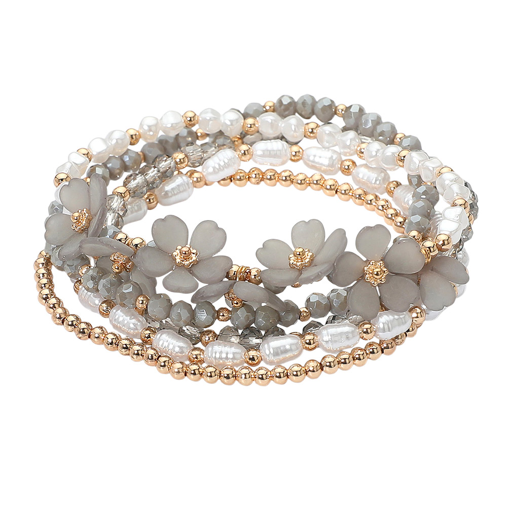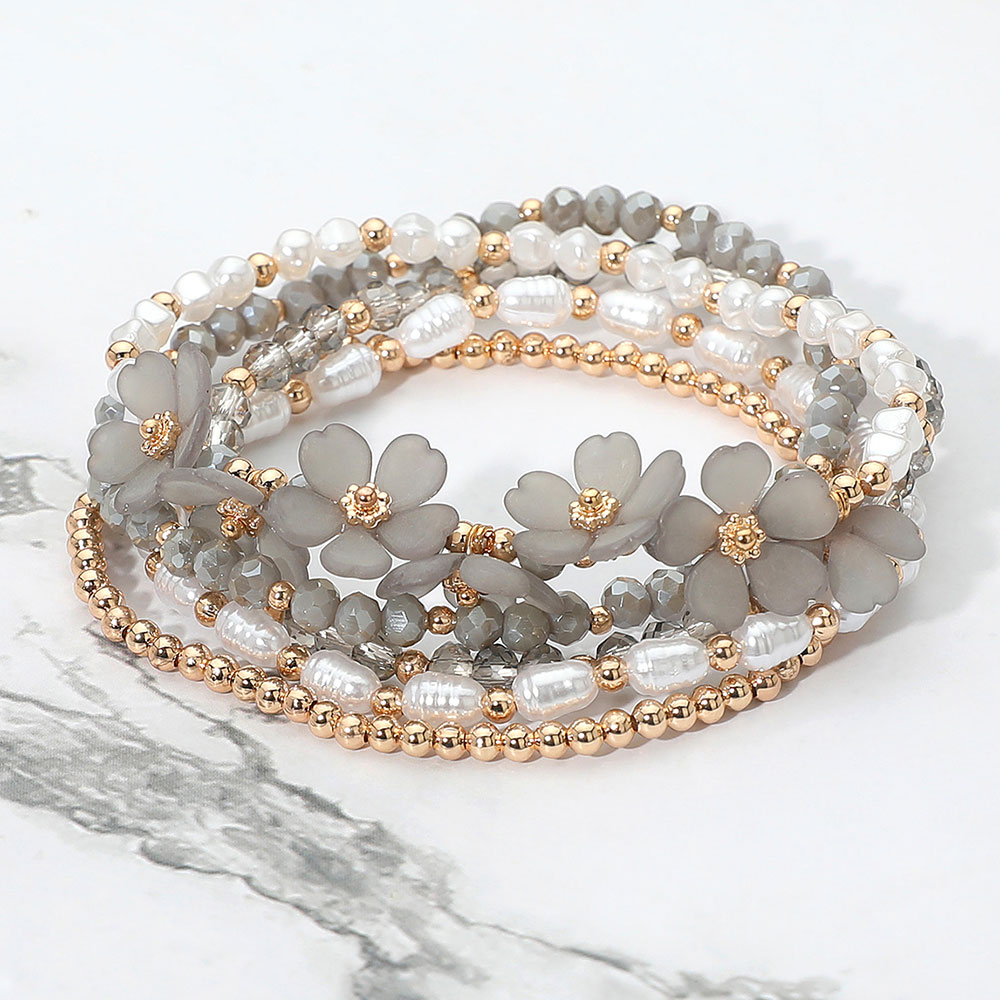 5PCS - Floral Pearl Faceted Beaded Stretch Multi Layered Bracelets