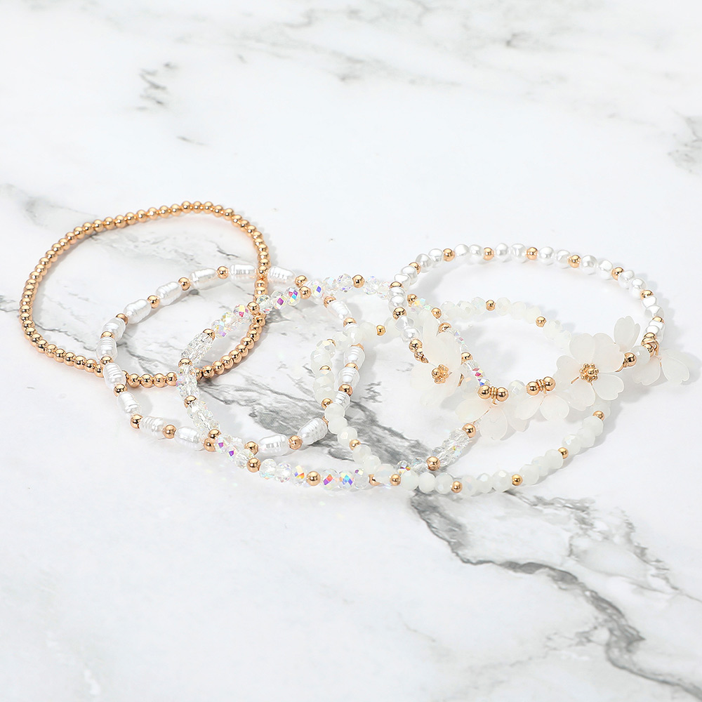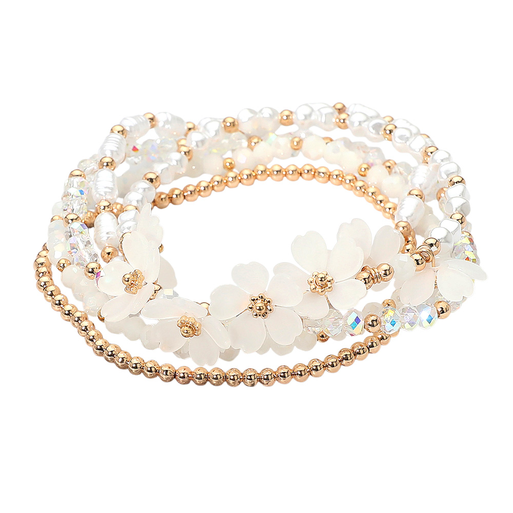 5PCS - Floral Pearl Faceted Beaded Stretch Multi Layered Bracelets