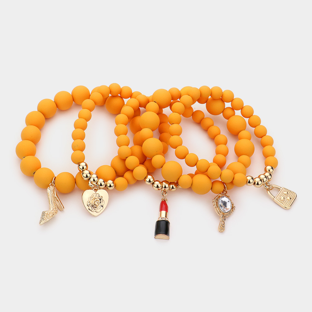 5PCS - Flower Heart Hand Mirror Lipstick Stiletto Hill Tote Bag Charm Beaded Stretch Bracelets