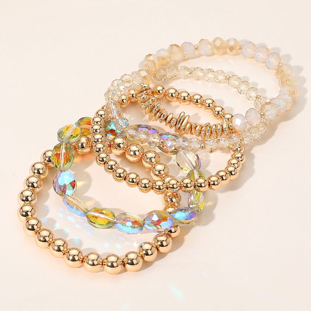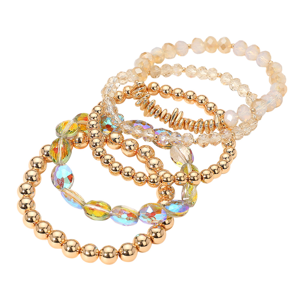 5PCS - Metal Ball Faceted Beaded Stretch Multi Layered Bracelets