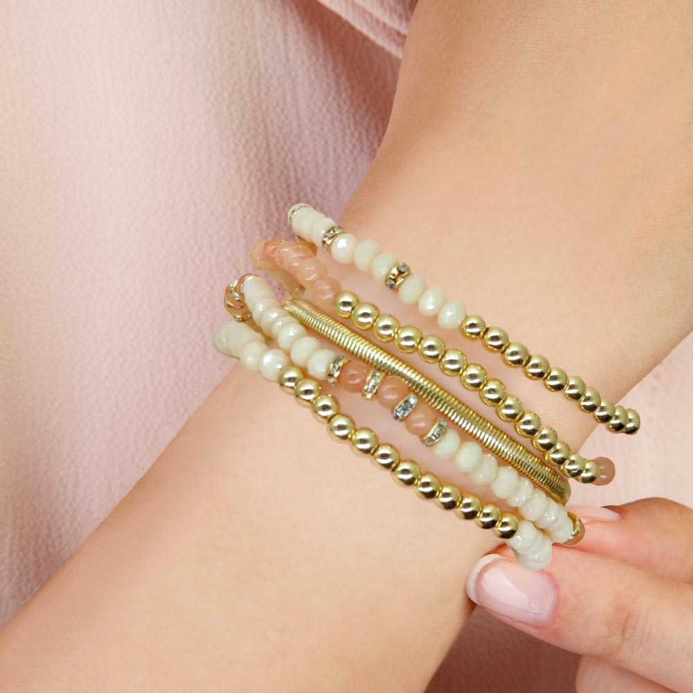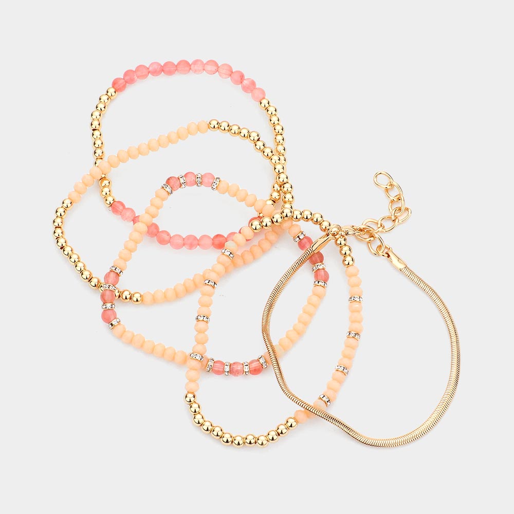 5PCS - Multi Beads Stretch Snake Chain Multi Layered Bracelets