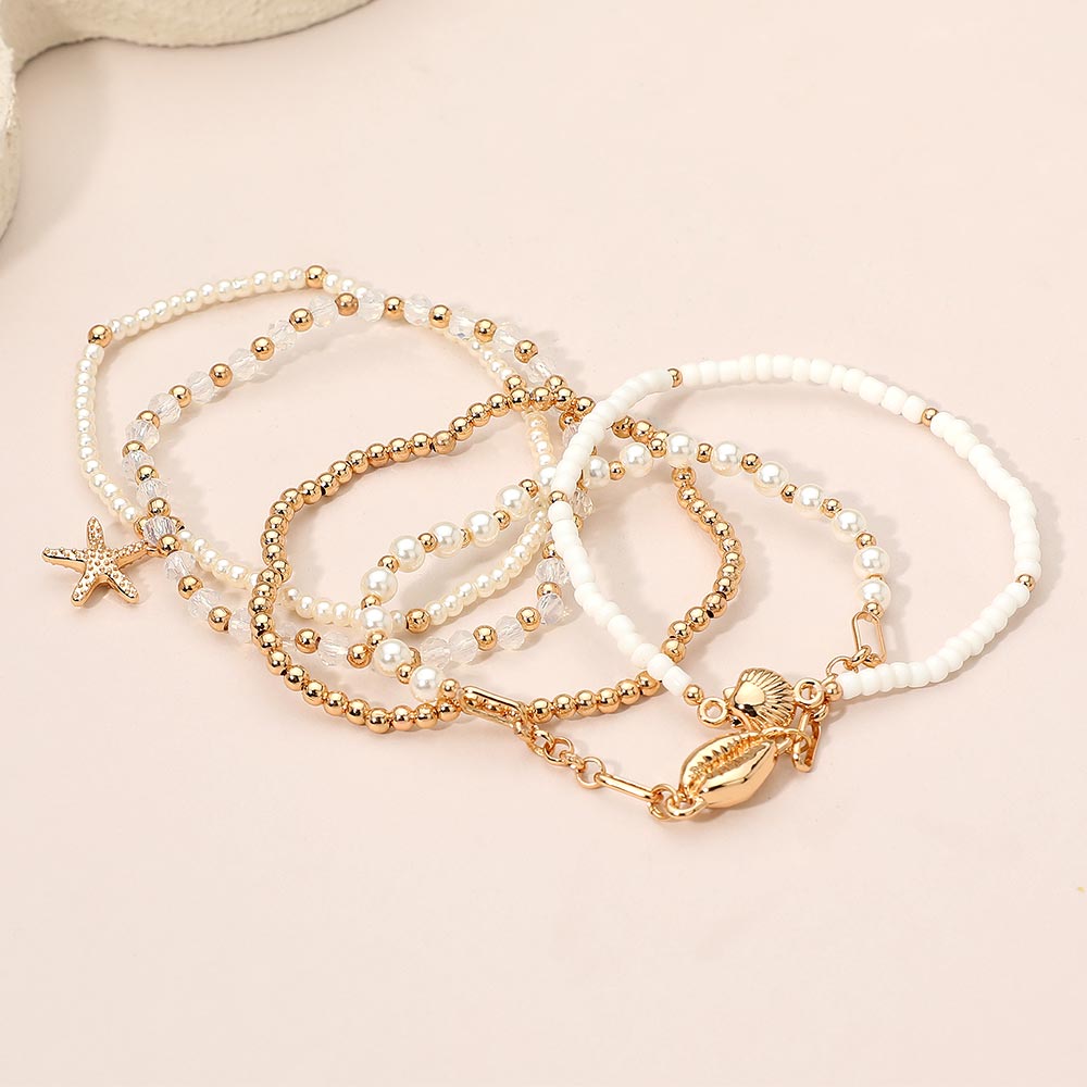 5PCS - Ocean Charm Beaded Stretch Multi Layered Bracelets
