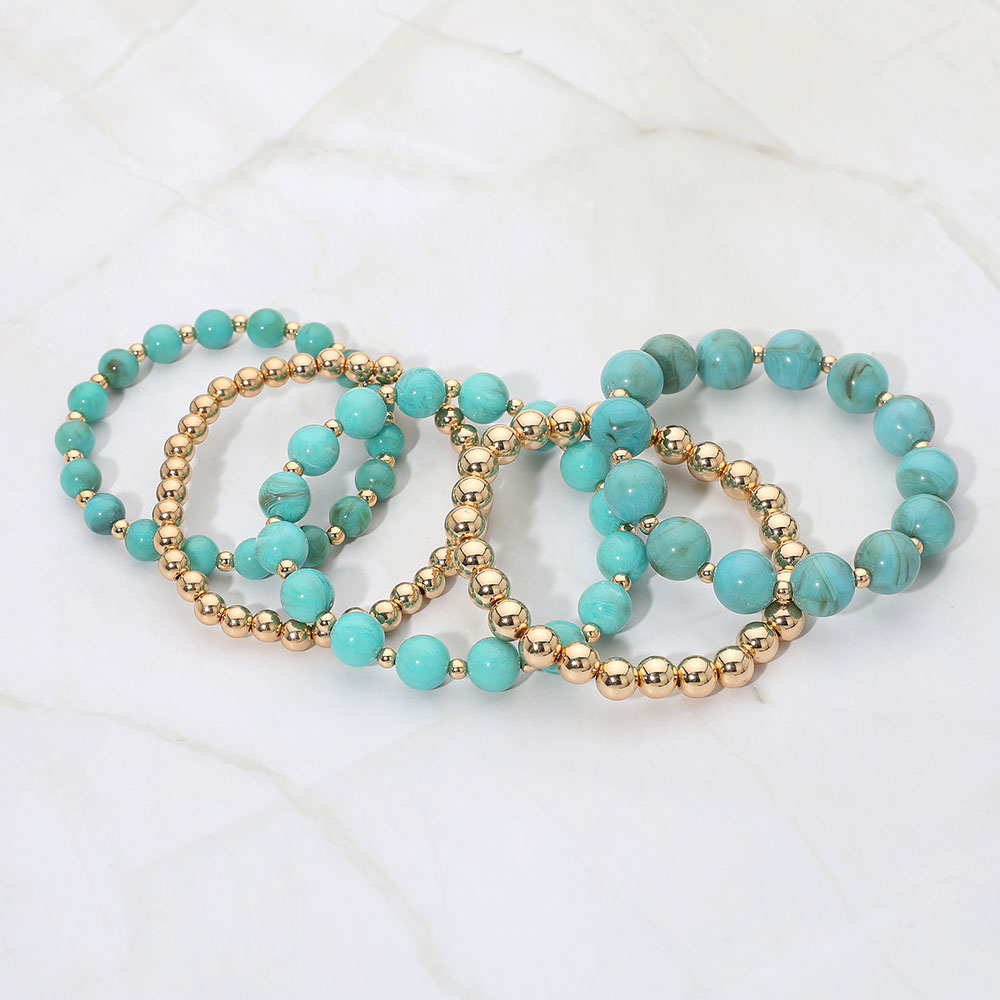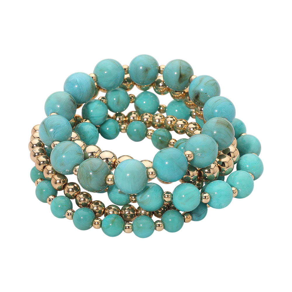 5PCS - Resin Metal Ball Beaded Stretch Multi Layered Bracelets