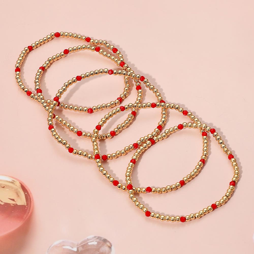5PCS - Skinny Beaded Stretch Multi Layered Bracelets
