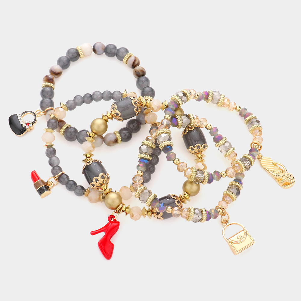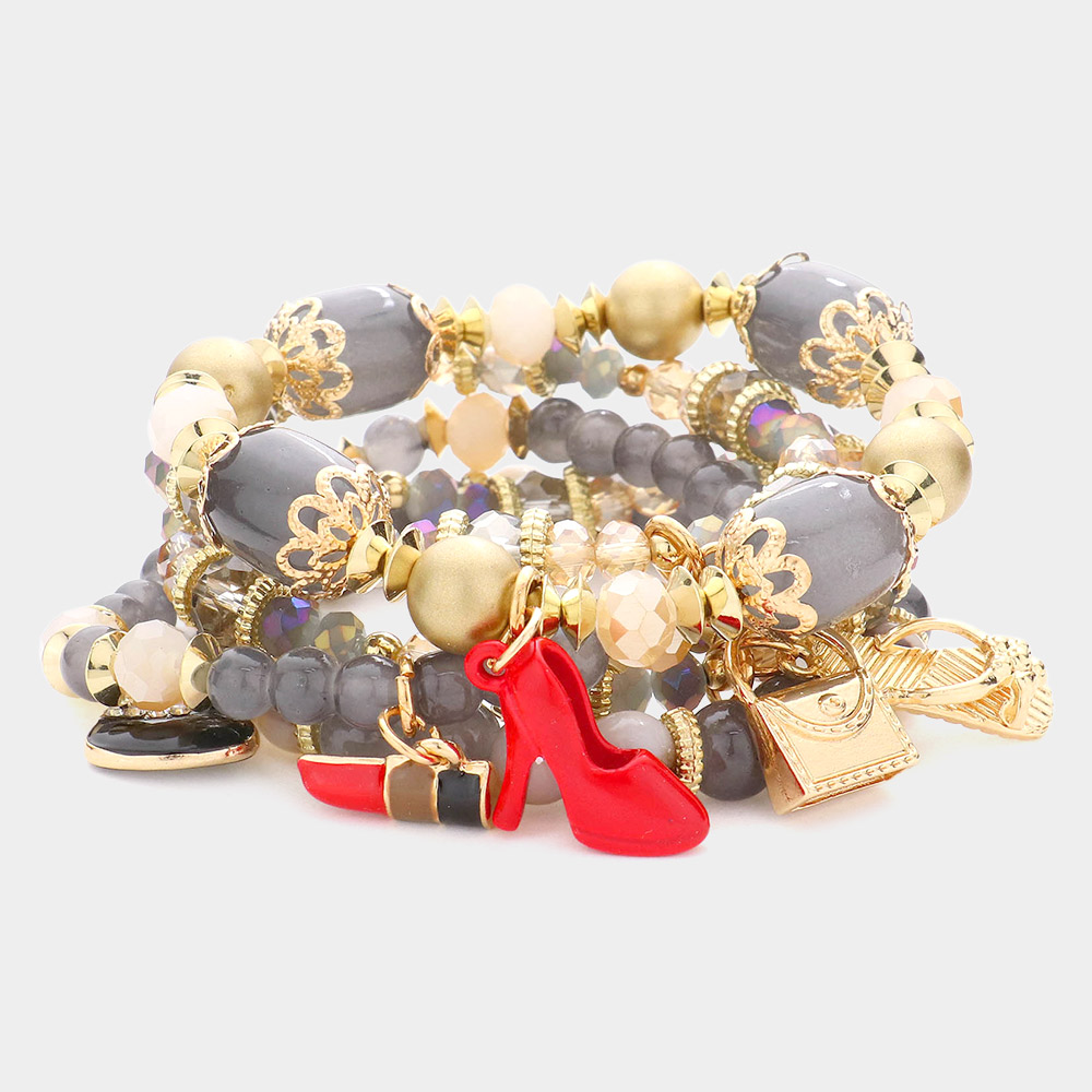 5PCS - Tote Bag Flip Flop Stiletto Heel Lipstick Charm Multi Beaded Stretch Bracelets