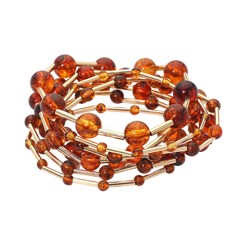 7PCS - Resin Ball Metal Bar Beaded Stretch Multi Layered Bracelets