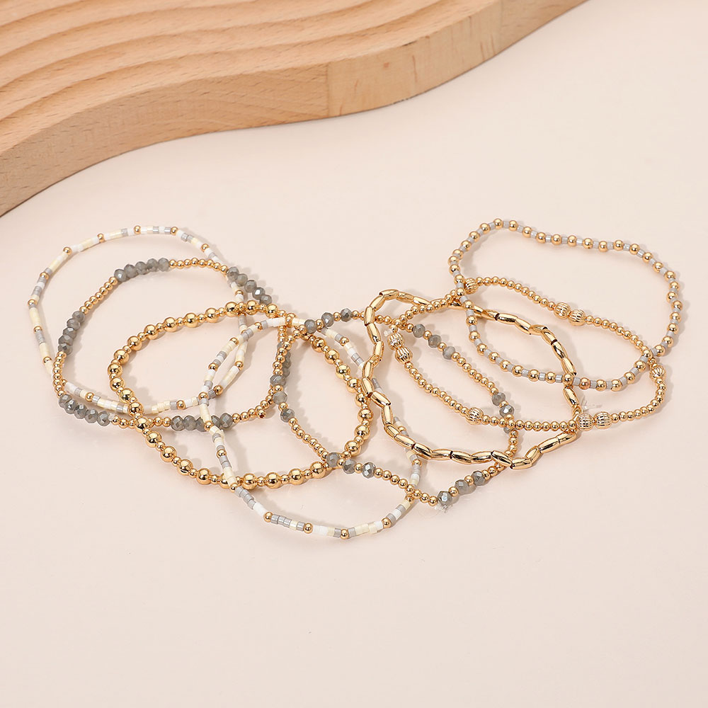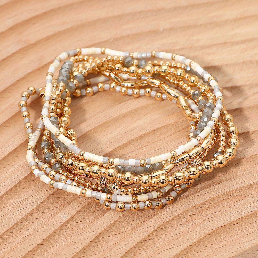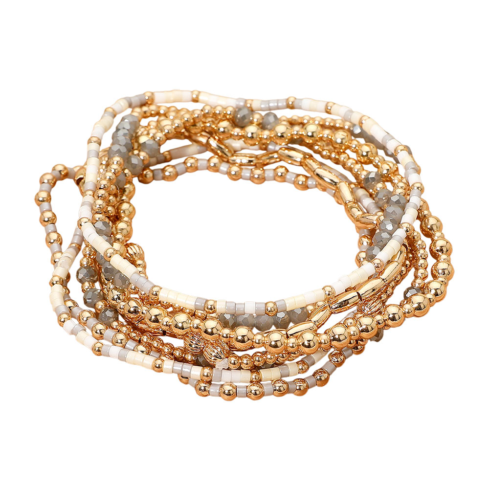 5PCS - Metal Ball Stretch Multi Layered Bracelets