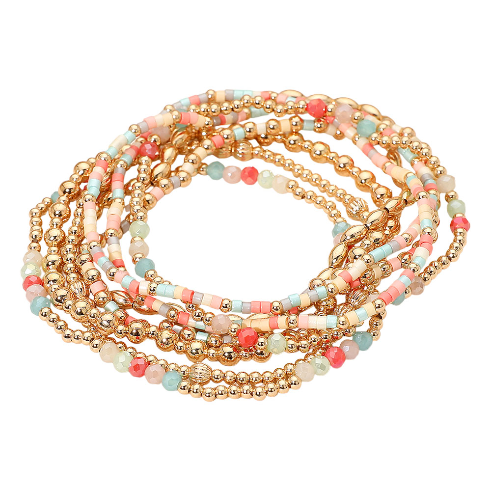 8PCS - Seed Beaded Stretch Multi Layered Bracelets