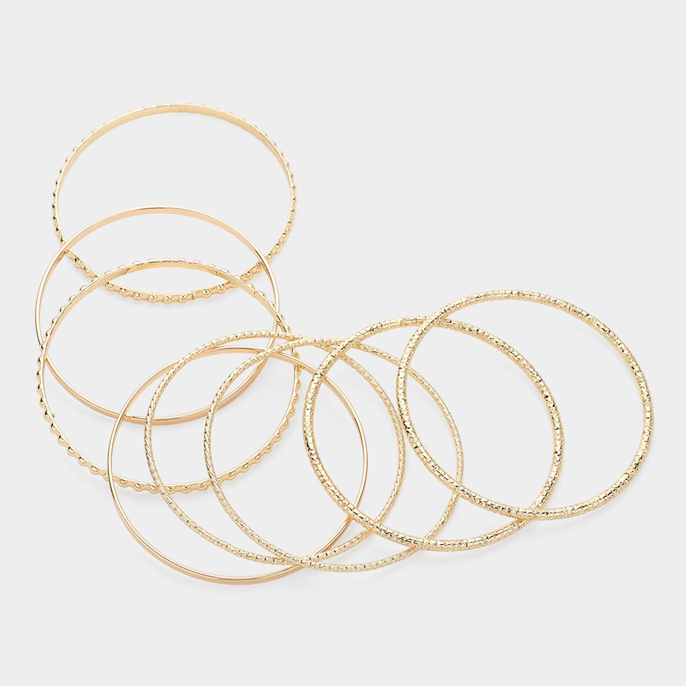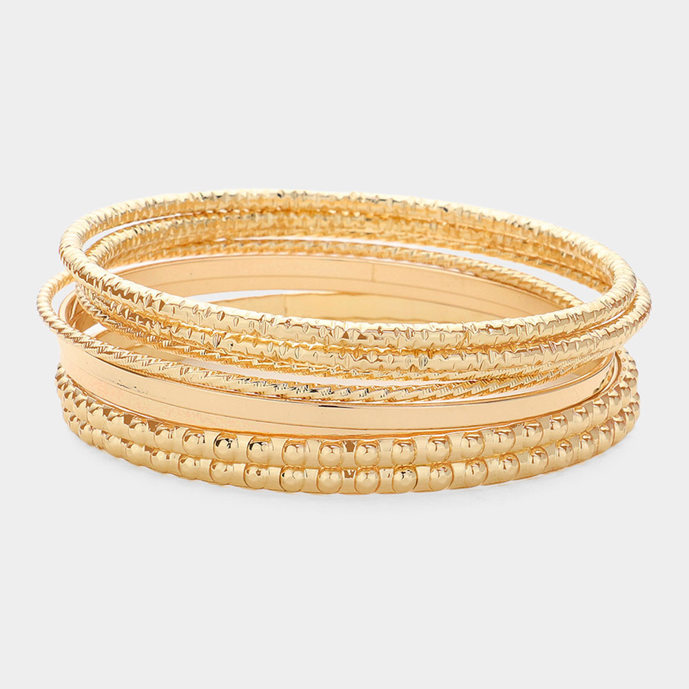 8PCS - Textured Metal Stackable Multi Layered Bracelets