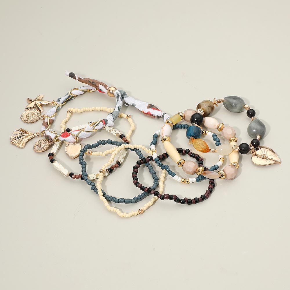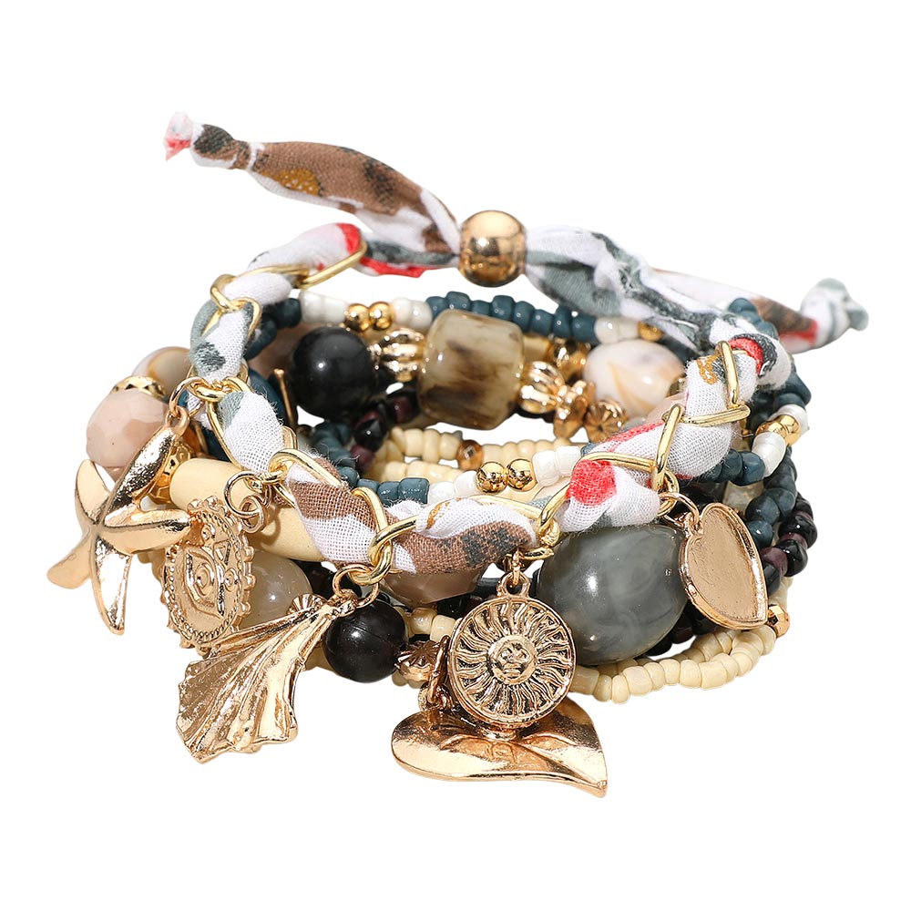 Details • Size 1 : 1.5" H / Stretchable • Size 2 : 0.4" H / Adjustable • Discover a multi-layered boho bracelet set featuring mixed beads, textured charms, and braided fabric accents. Designed for effortless stacking, this eclectic collection adds depth and personality to any look while offering versatile styling for daily wear or special outfits. • Lead and Nickel Compliant • Made In India