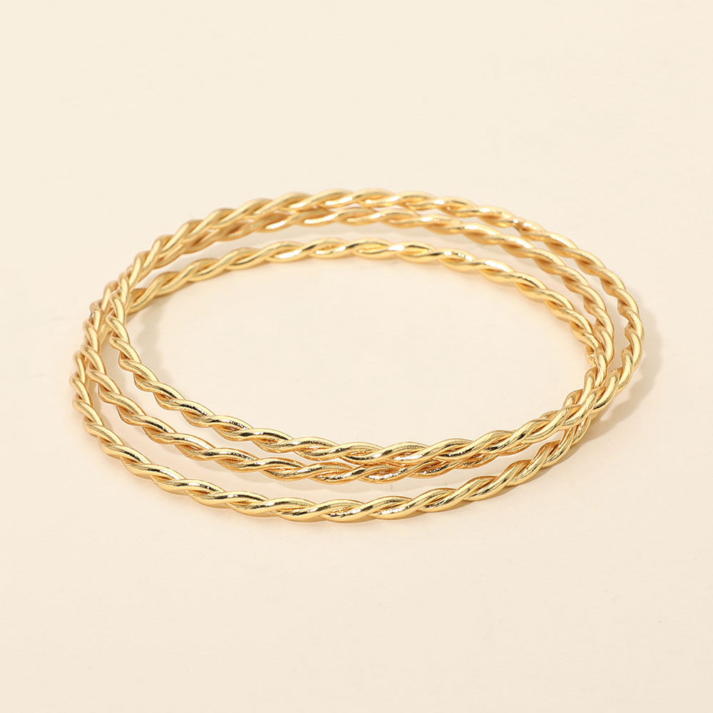SECRET BOX_3PCS Stainless Steel Twisted Stackable Multi Layered Bangle Bracelets