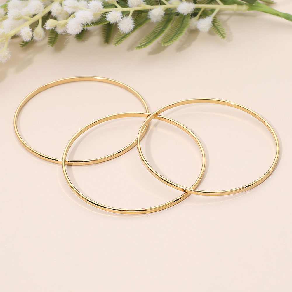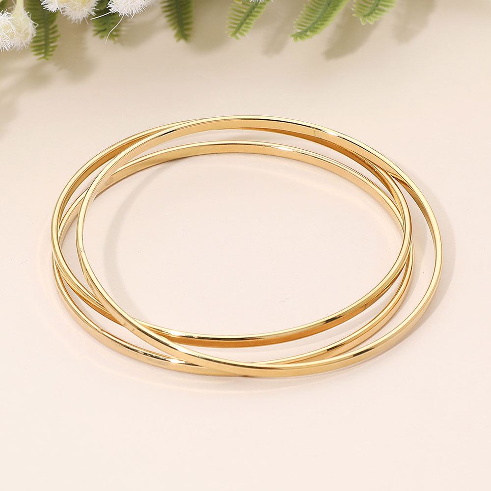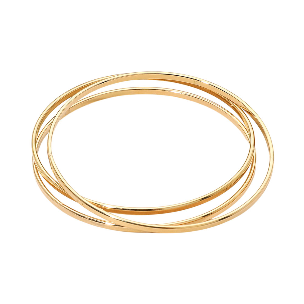 Details • Size : 0.3" H, 2.6" D • Water Resistant • Sleek layered bangle bracelet set featuring multiple slim bands for a clean, modern stacked look. Designed to add subtle shine and movement, this versatile set elevates everyday outfits or complements evening styles when worn together or mixed with other favorite bracelets. • Hypoallergenic • Stainless Steel