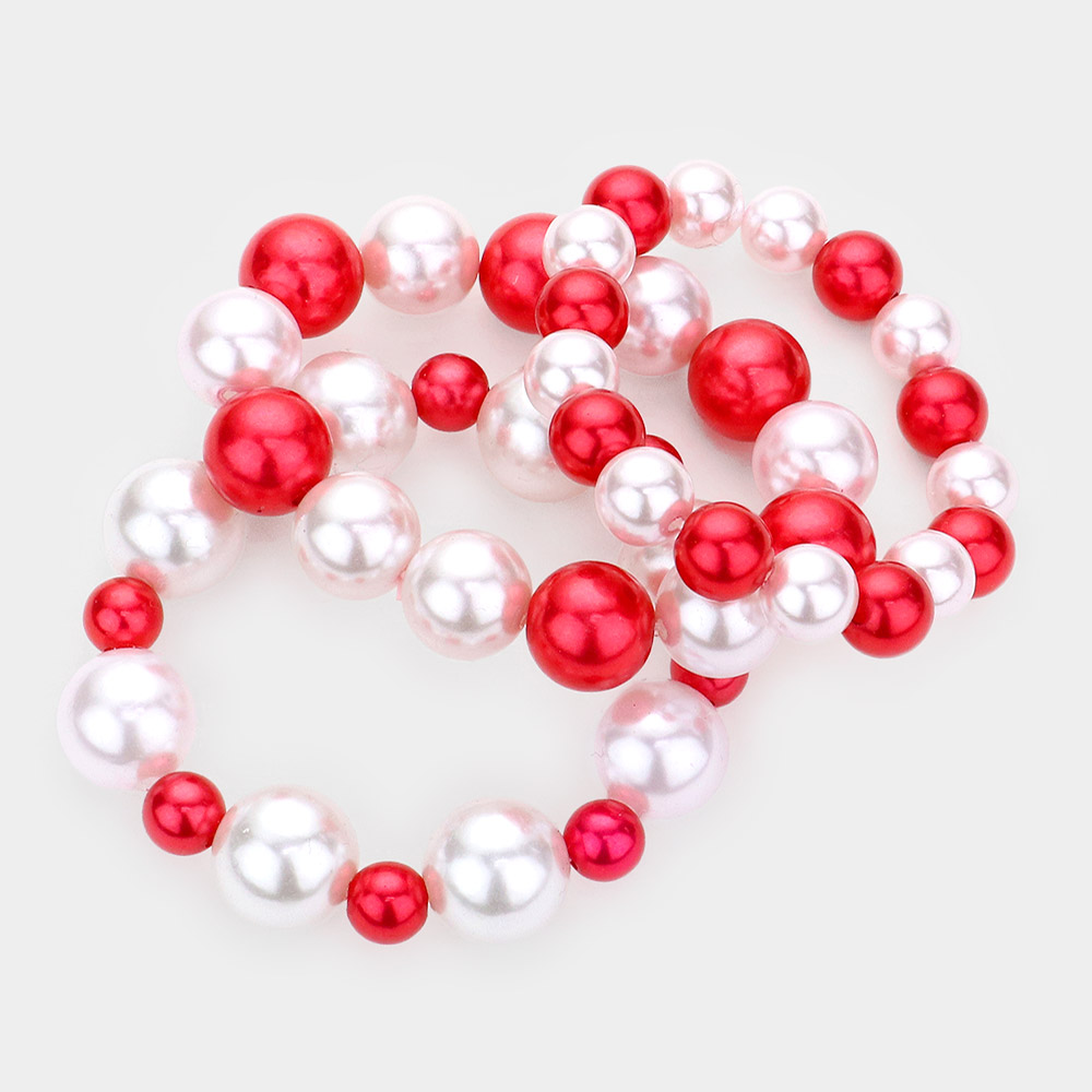 Crystal Rhinestone Paved Flower Bloom Pearl Triple Strand Necklace