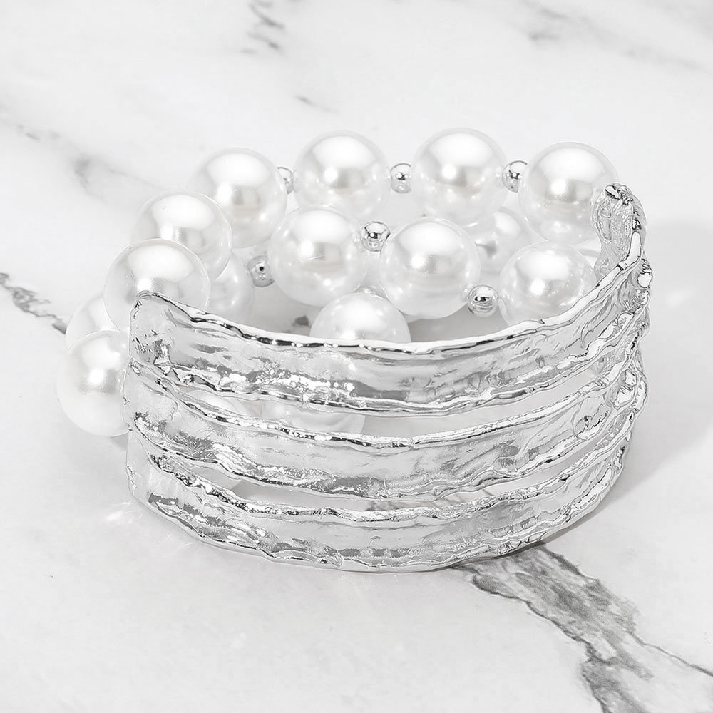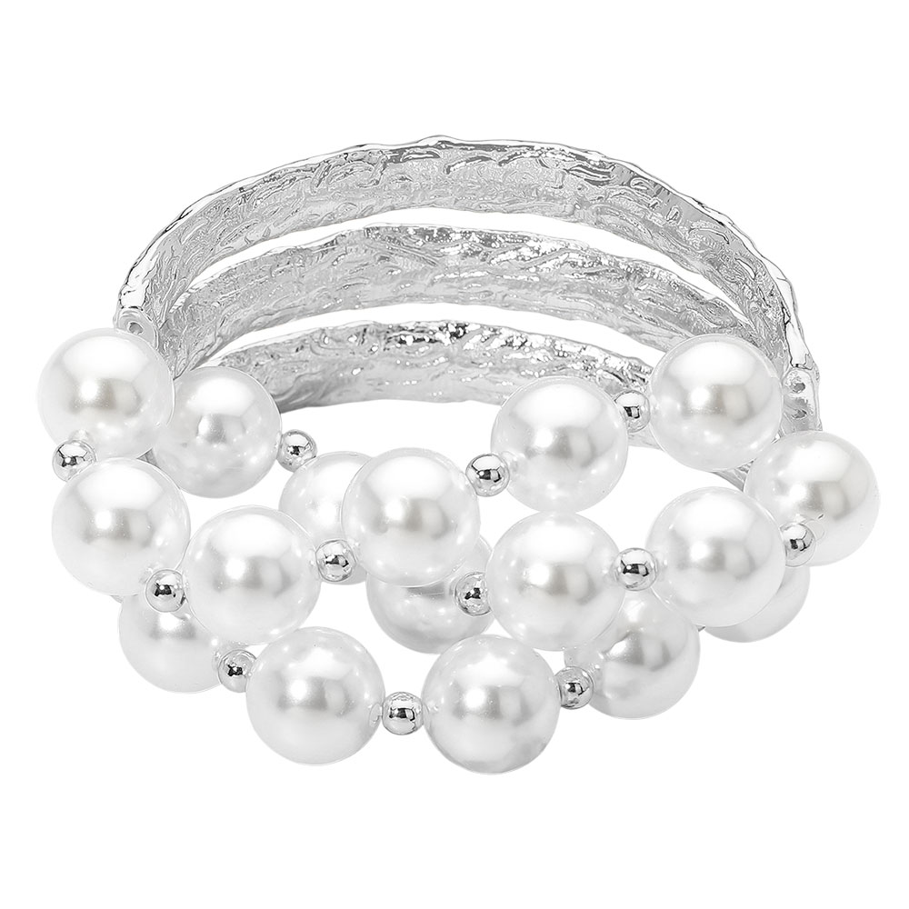 Multi Strand Pearl Bead Stretch Statement Bracelet