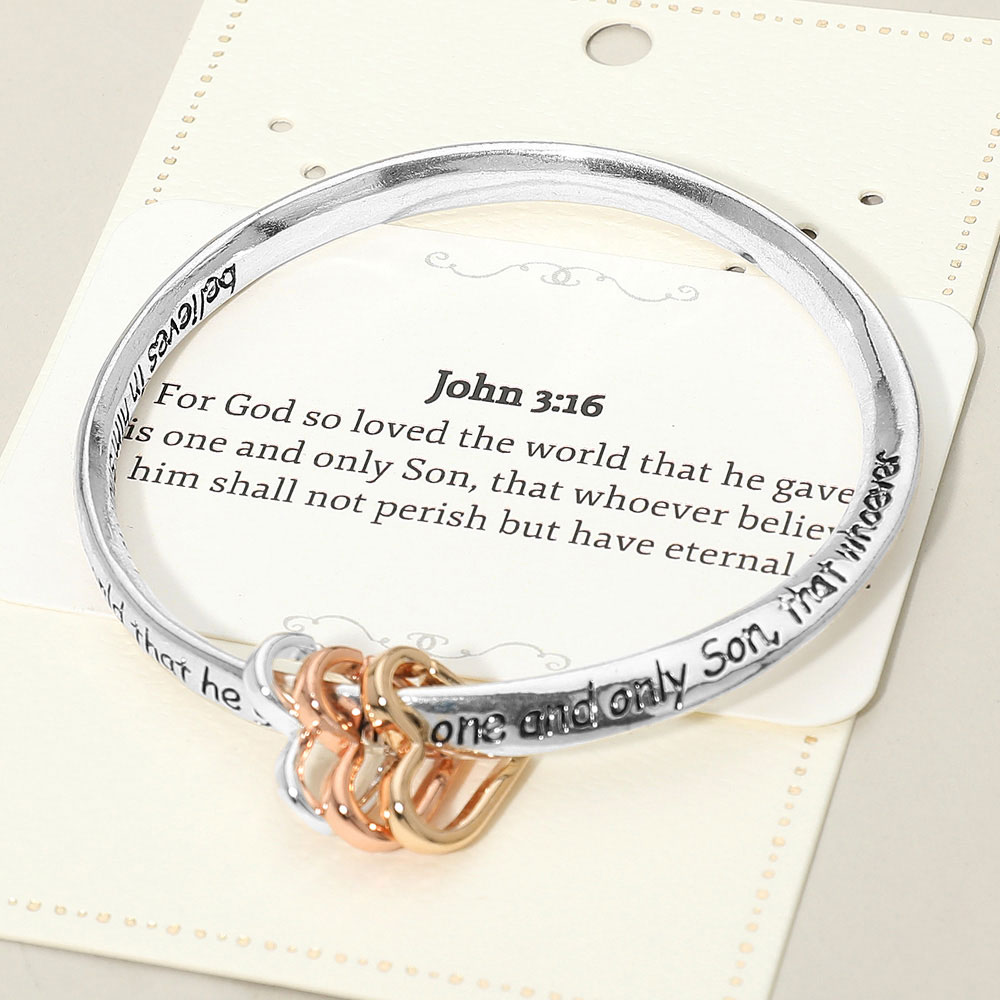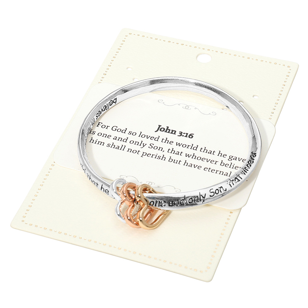 Details • Size : 0.75" H, 2.5" D • Celebrate meaningful style with this scripture verse bangle bracelet featuring an inspiring engraved message and charming accent rings. A thoughtful accessory for daily wear or gifting, blending faith-inspired sentiment with timeless design for a look that feels personal and uplifting. • Lead and Nickel Compliant