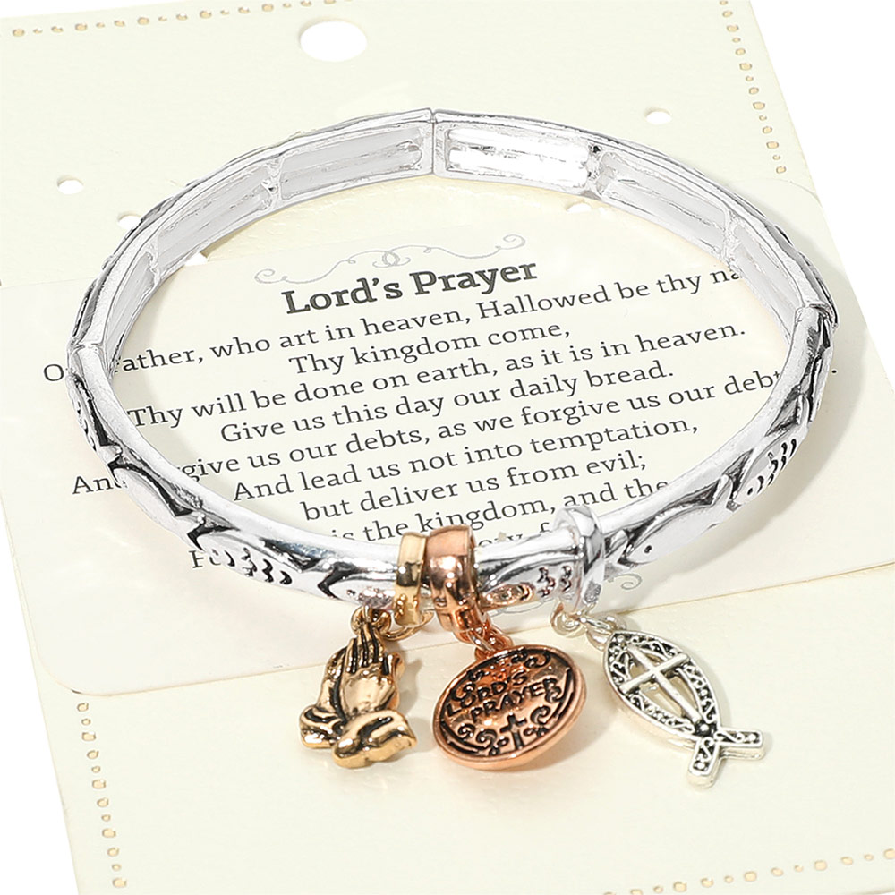Lords Prayer Message Religious Charm Stretch Bracelet