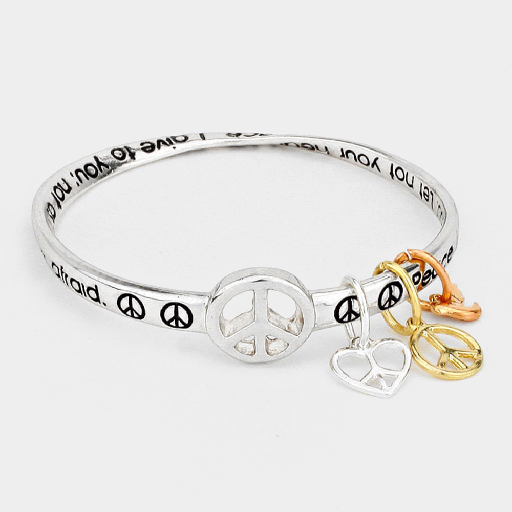 Round Stone Tip Antique Metal Hinged Cuff Bracelet