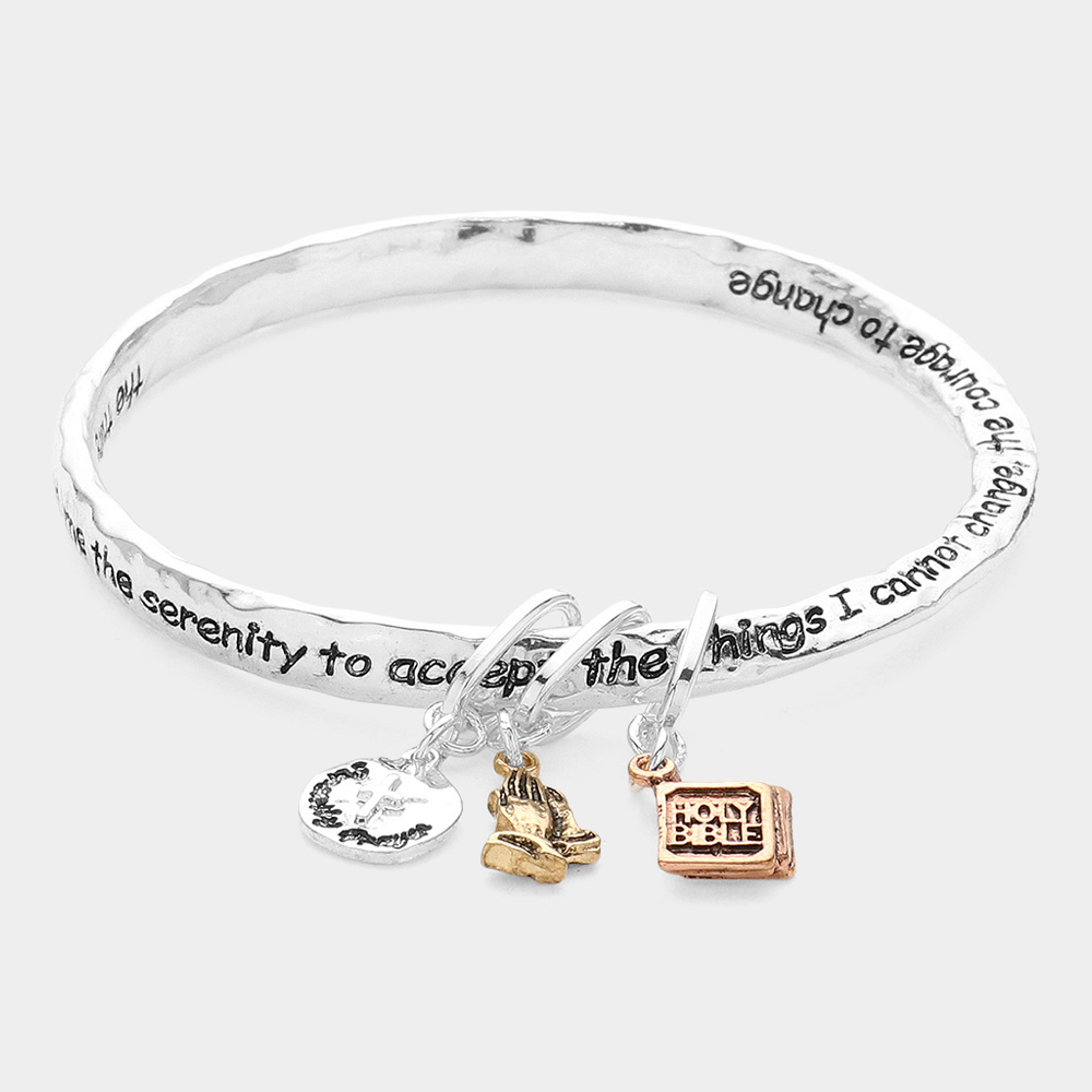 Serenity Prayer Message Religious Charm Metal Bangle Bracelet