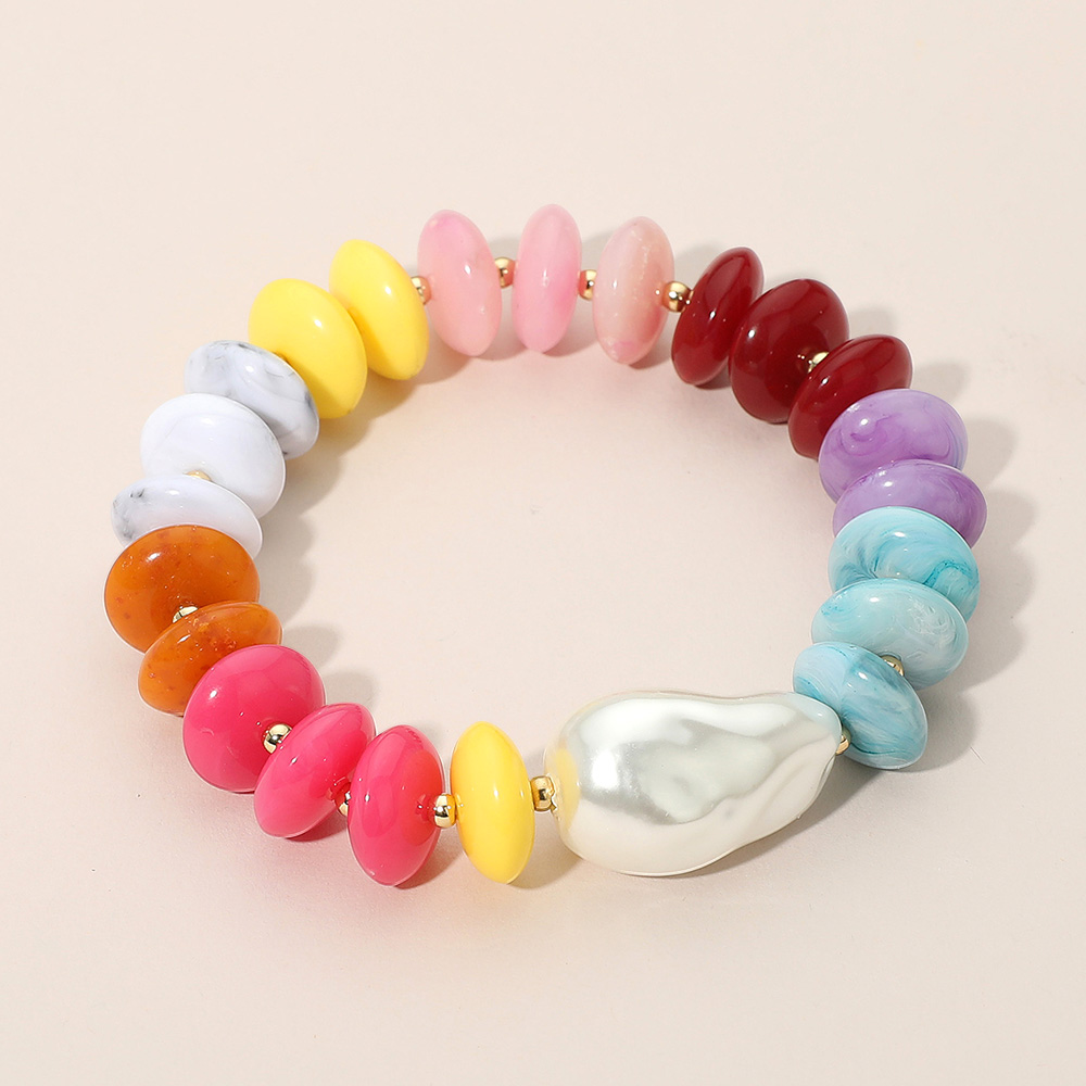 Abstract Pearl Accent Resin Pebble Beaded Stretch Bracelet