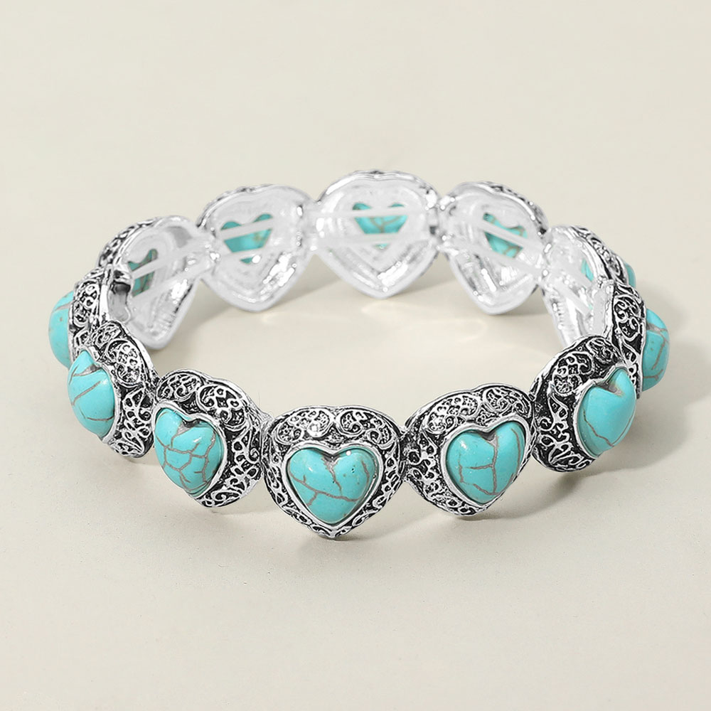 Antique Metal Scrollwork Frame Heart Tile Beaded Stretch Bracelet