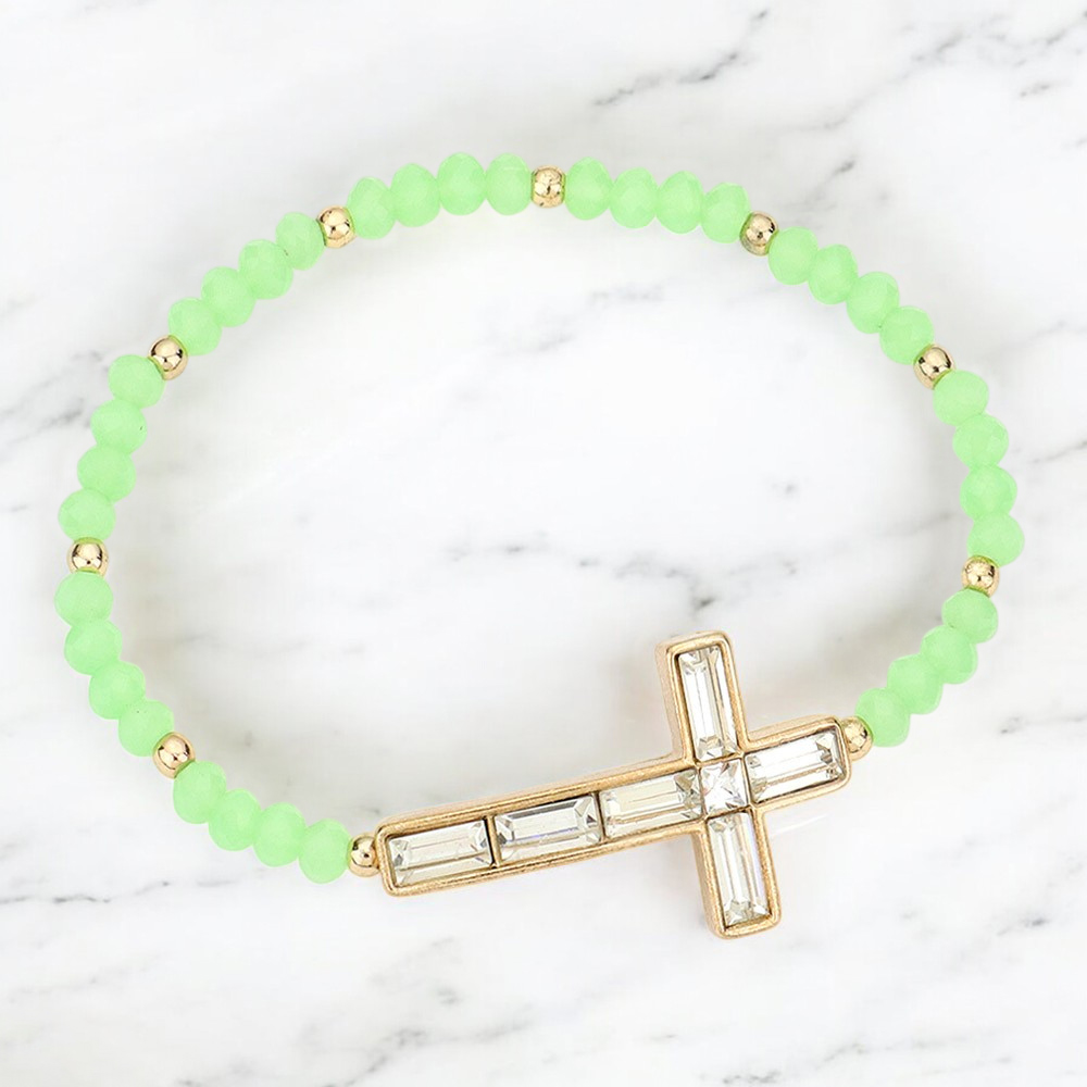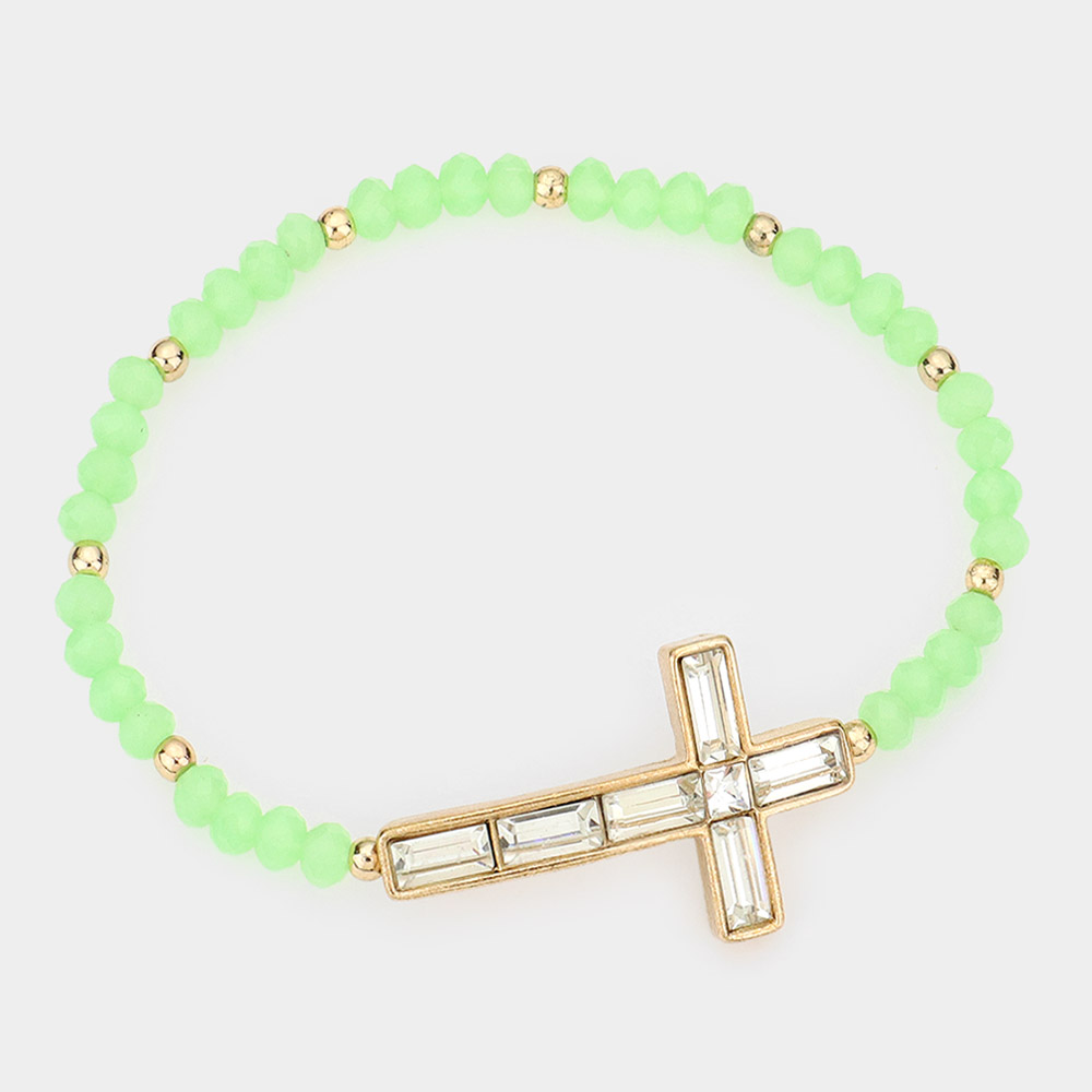 Cross Accented Faceted Beaded Stretch Bracelet
