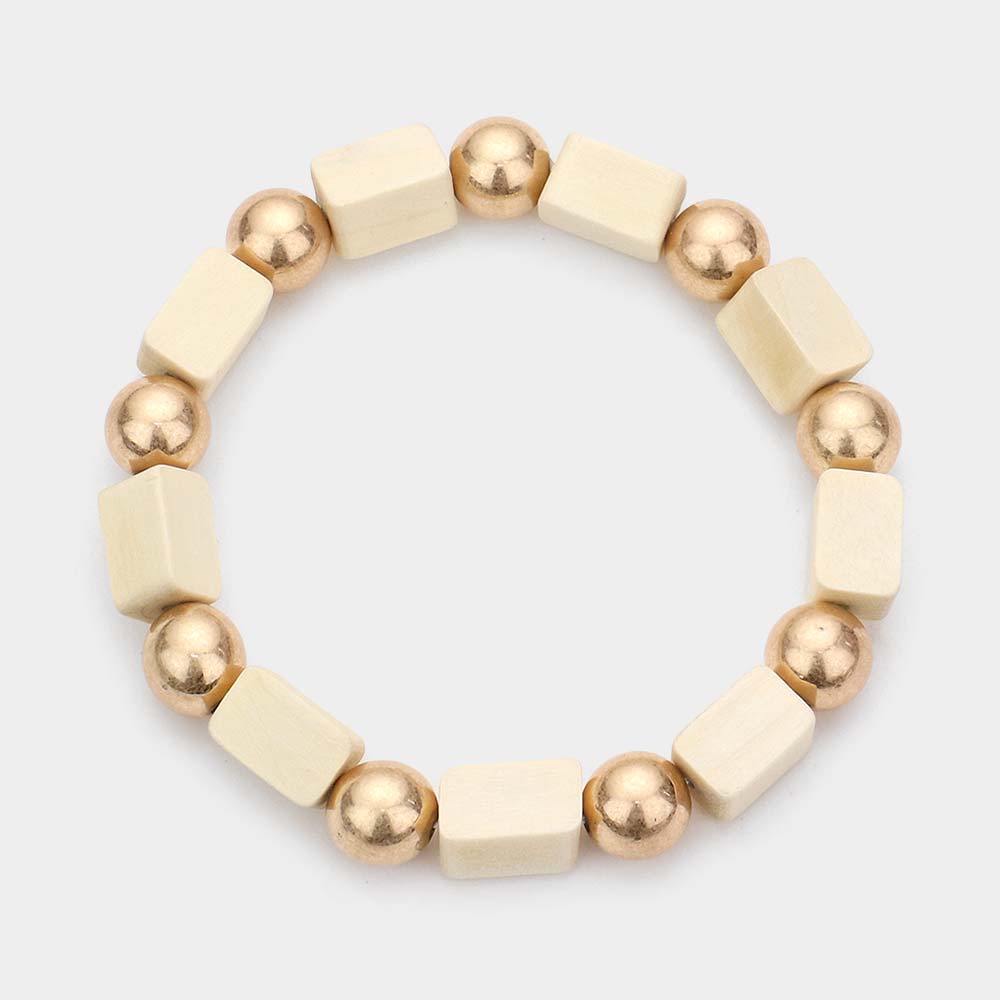 Cube Wood Metal Ball Stretch Bracelet