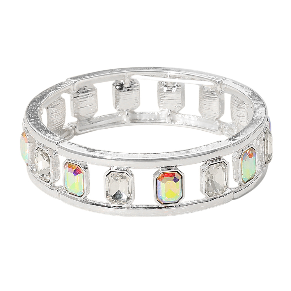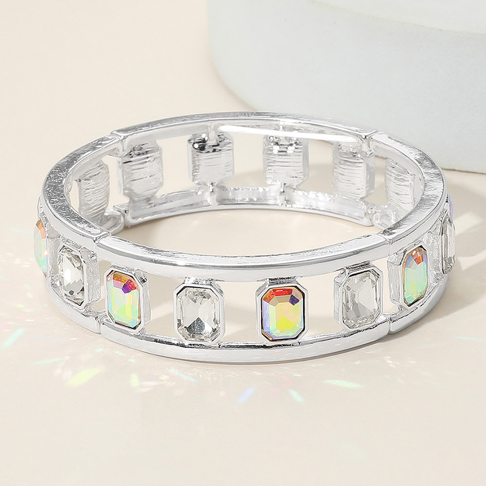 Emerald Cut Stone Embellished Open Frame Stretch Bracelet
