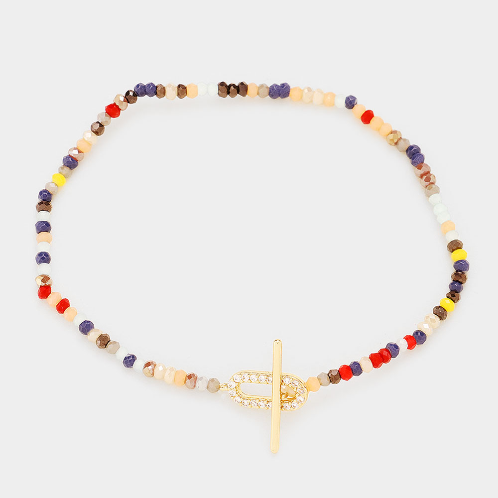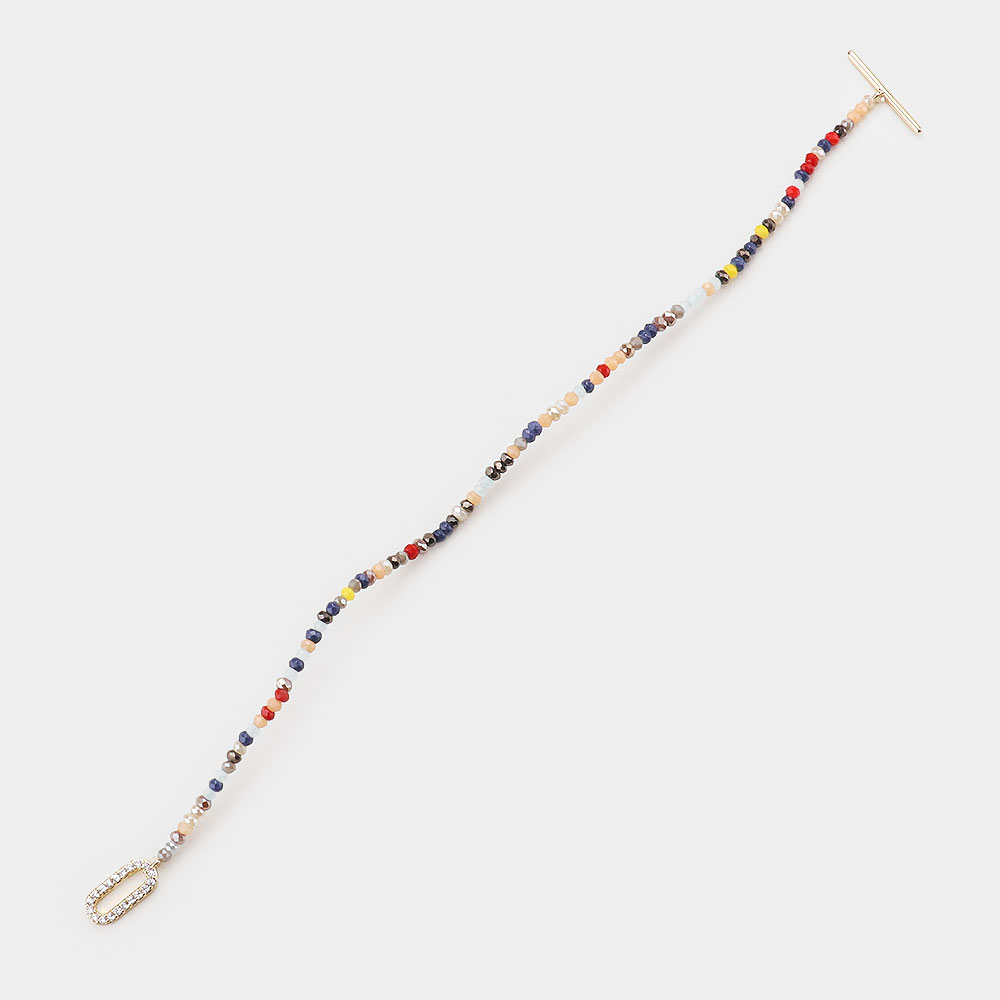Faceted Beaded Rhinestone Oval Accented Stretch Toggle Bracelet