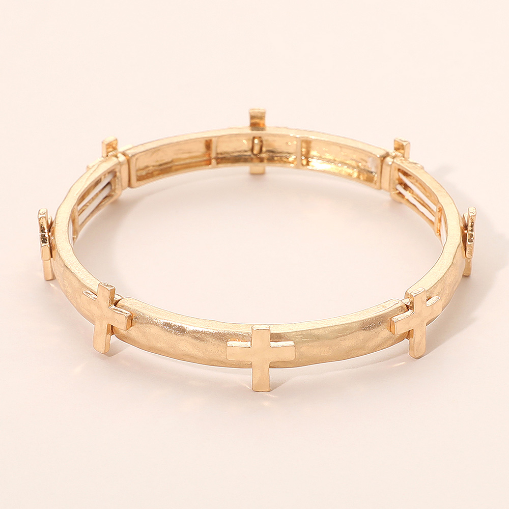 Hammered Brushed Metal Cross Accent Stretch Bracelet