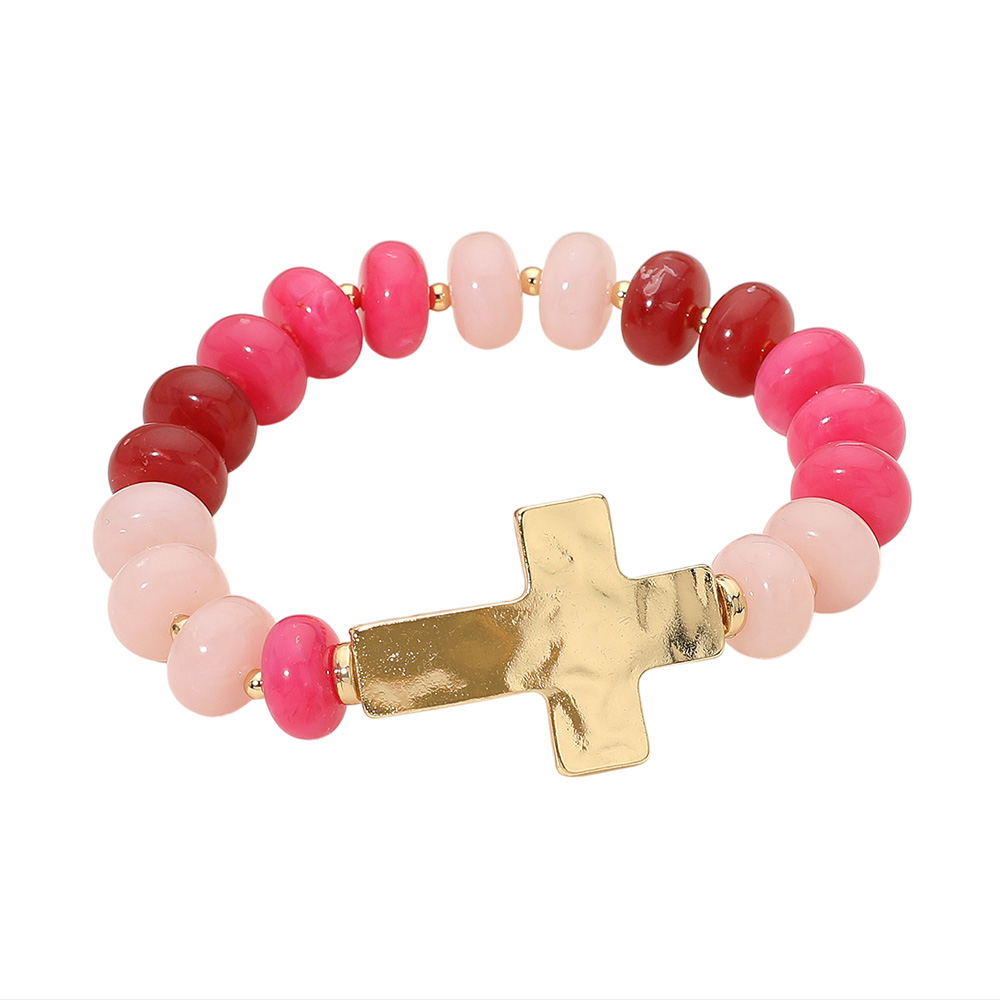 Details • Size : 1" H • Stretchable • Colorful beaded stretch bracelet featuring glossy round beads and a bold cross charm centerpiece. Comfortable and stylish, this bracelet makes a meaningful accessory for everyday wear or as a thoughtful gift. • Lead and Nickel Compliant