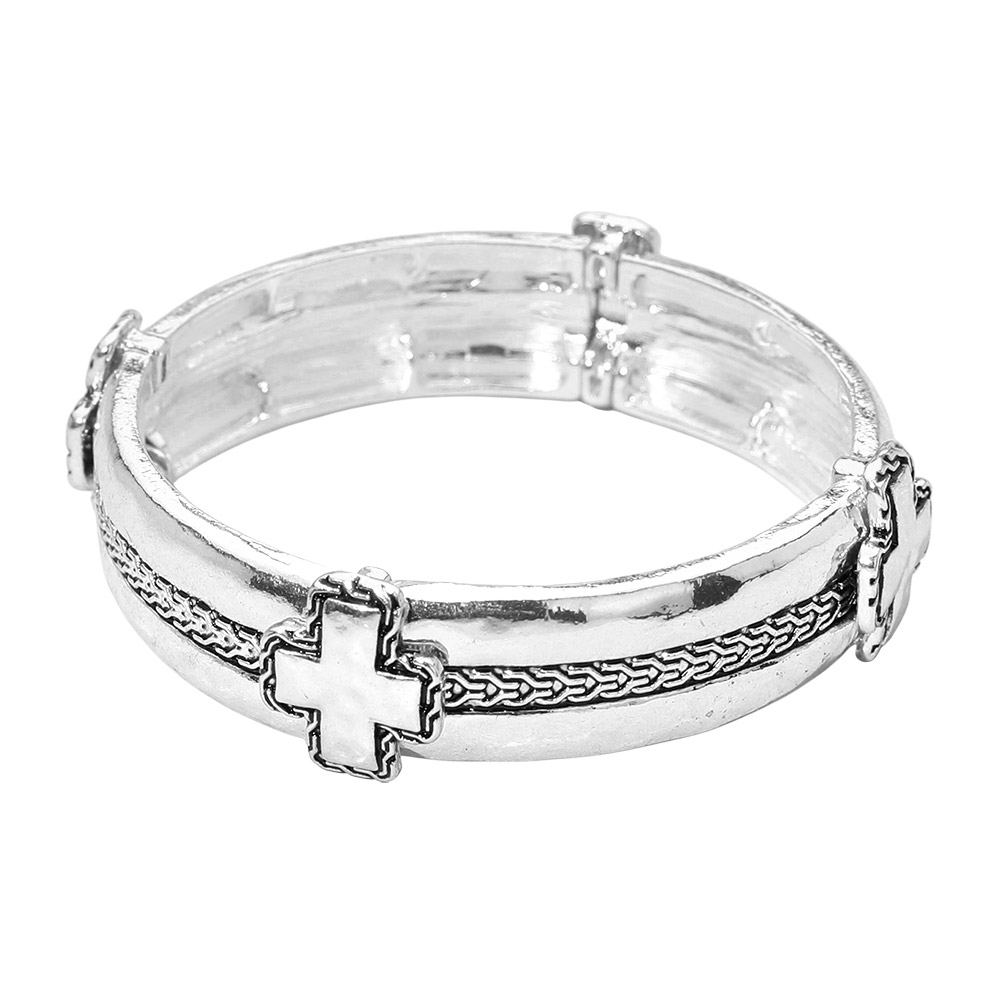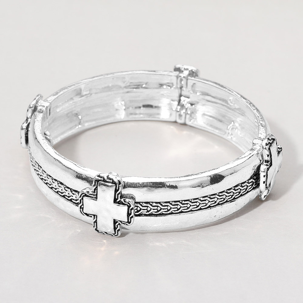 Metal Cross Accent Textured Stretch Bracelet Metal Cross Accent Textured Stretch Bracelet