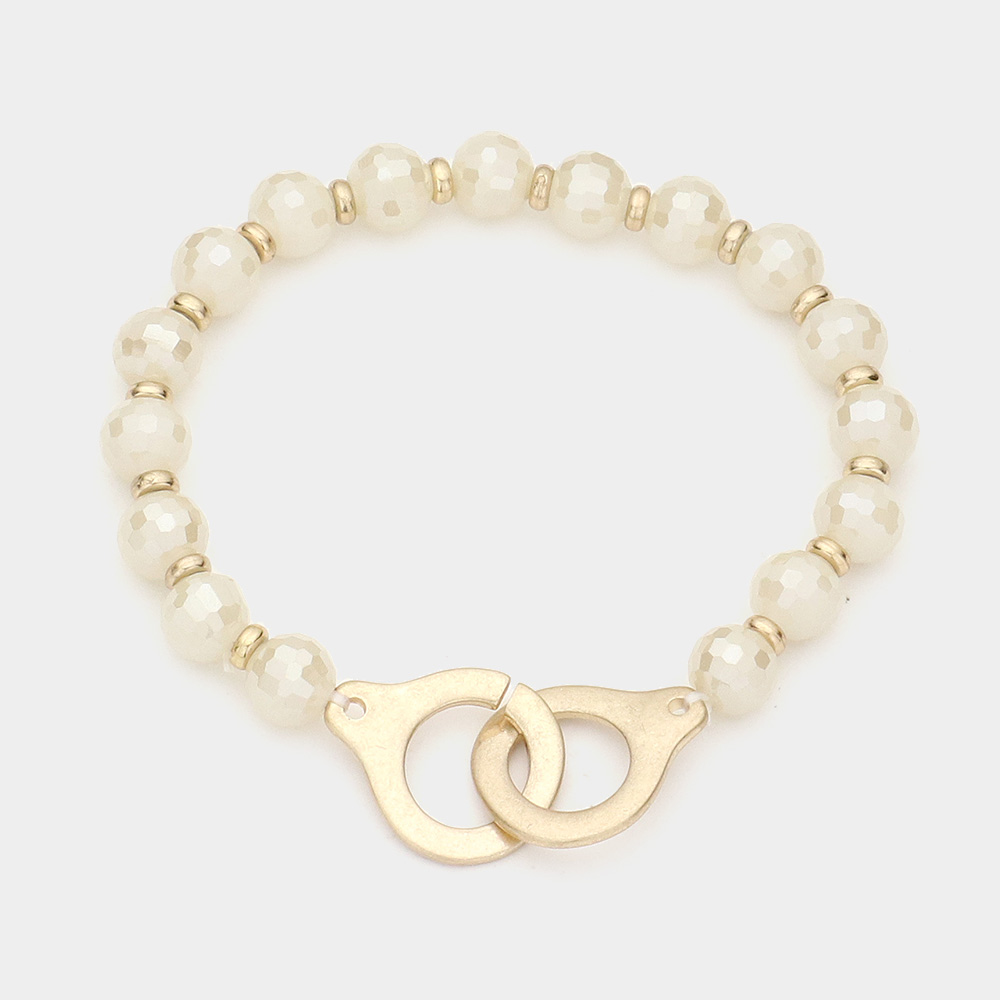 Open Metal Link Accented Faceted Beaded Stretch Bracelet