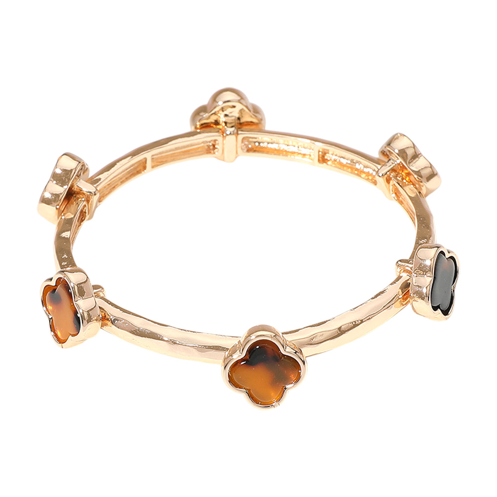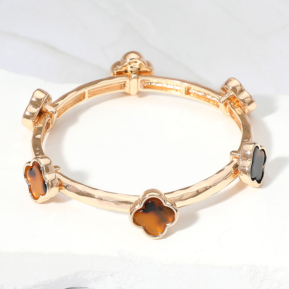 Mother Of Pearl Quatrefoil Pointed Stainless Steel Hinged Bangle Bracelet