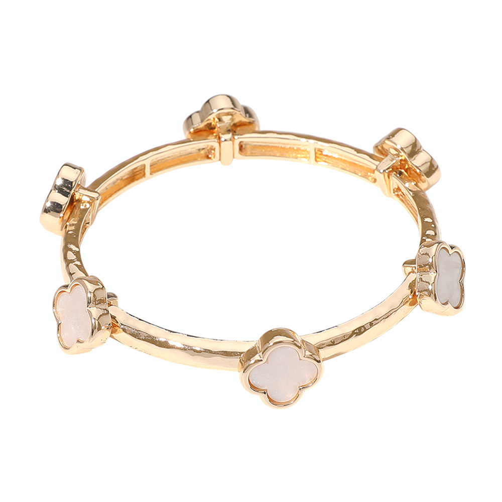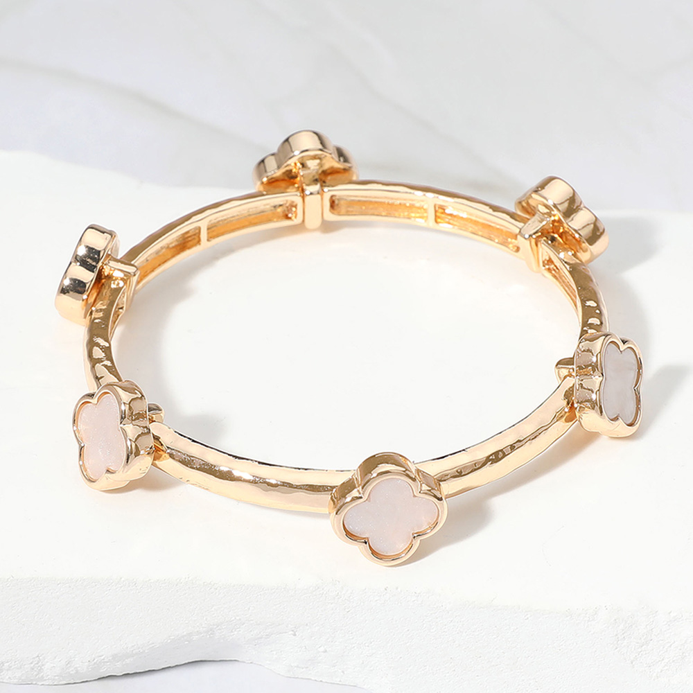 3PCS - Semi Precious Quatrefoil Metal Band Mixed Rings