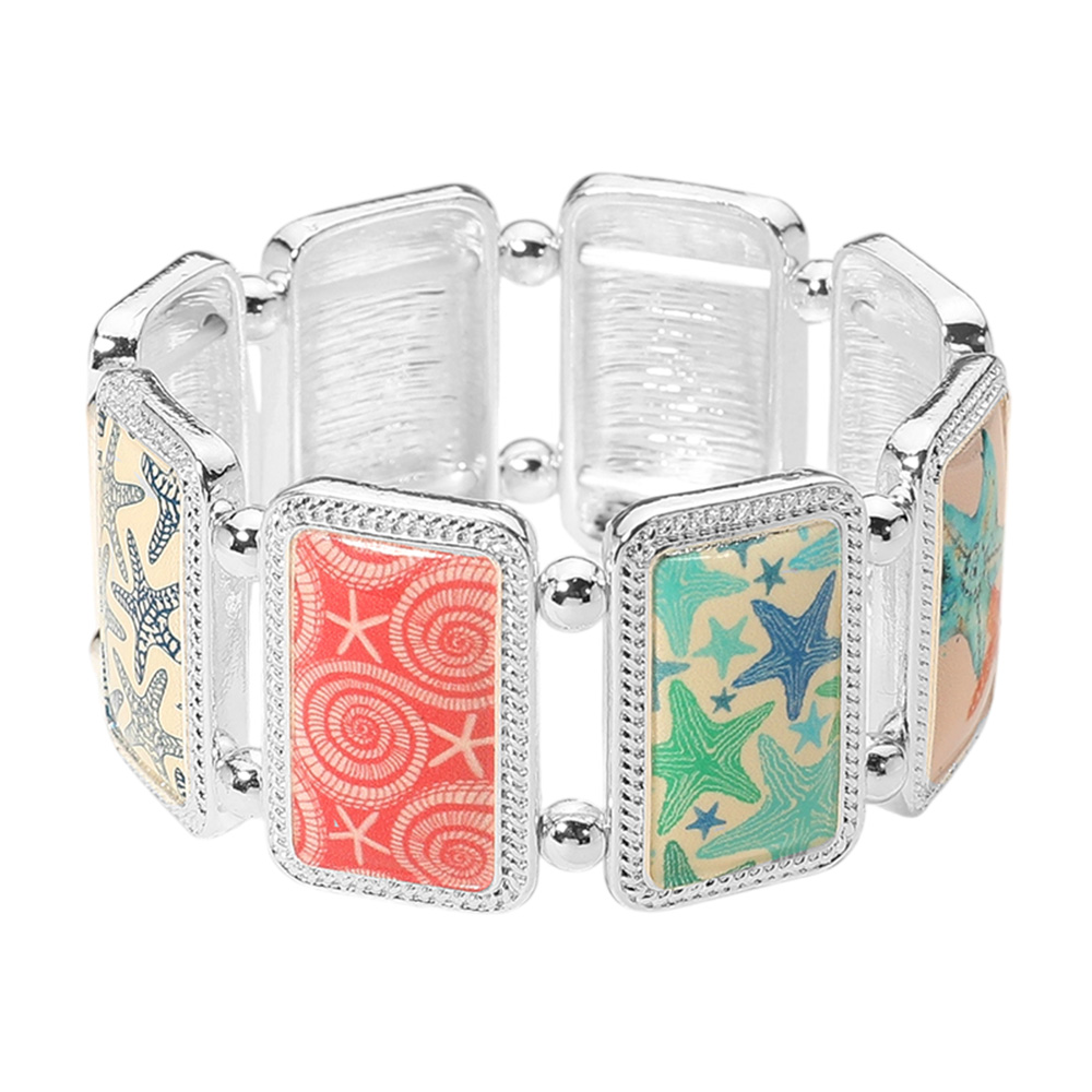 Rectangular Starfish Epoxy Cluster Link Stretch Bracelet