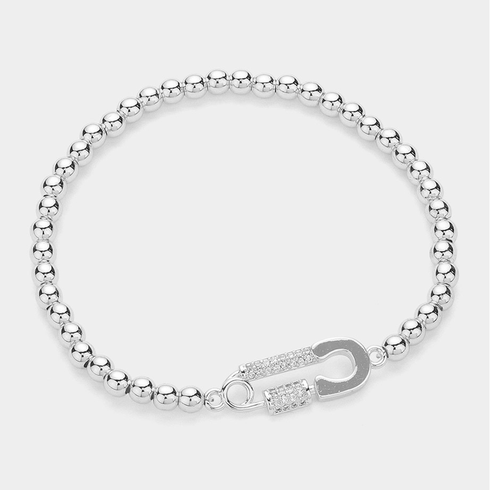 Stainless Steel Stone Paved Safety Pin Charm Pointed Stretch Bracelet
