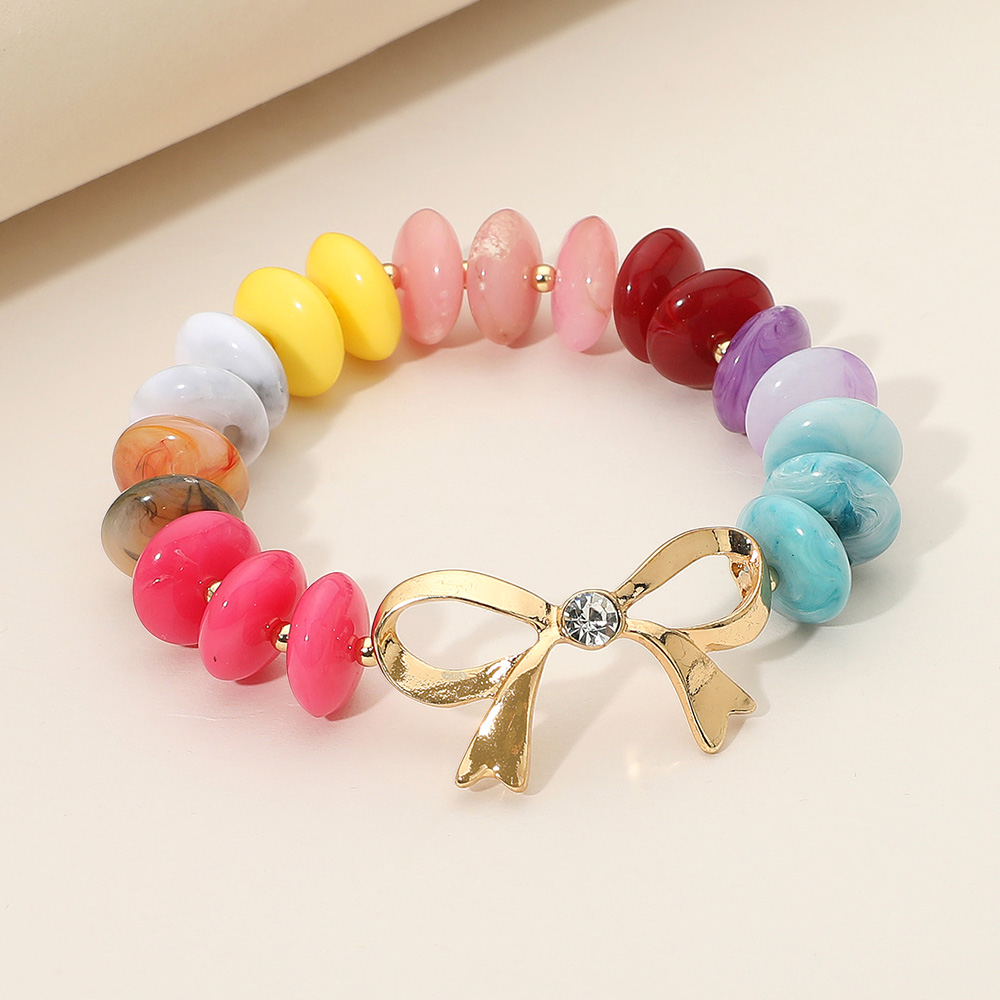 Stone Accent Metal Bow Accent Flat Resin Disc Beaded Stretch Bracelet