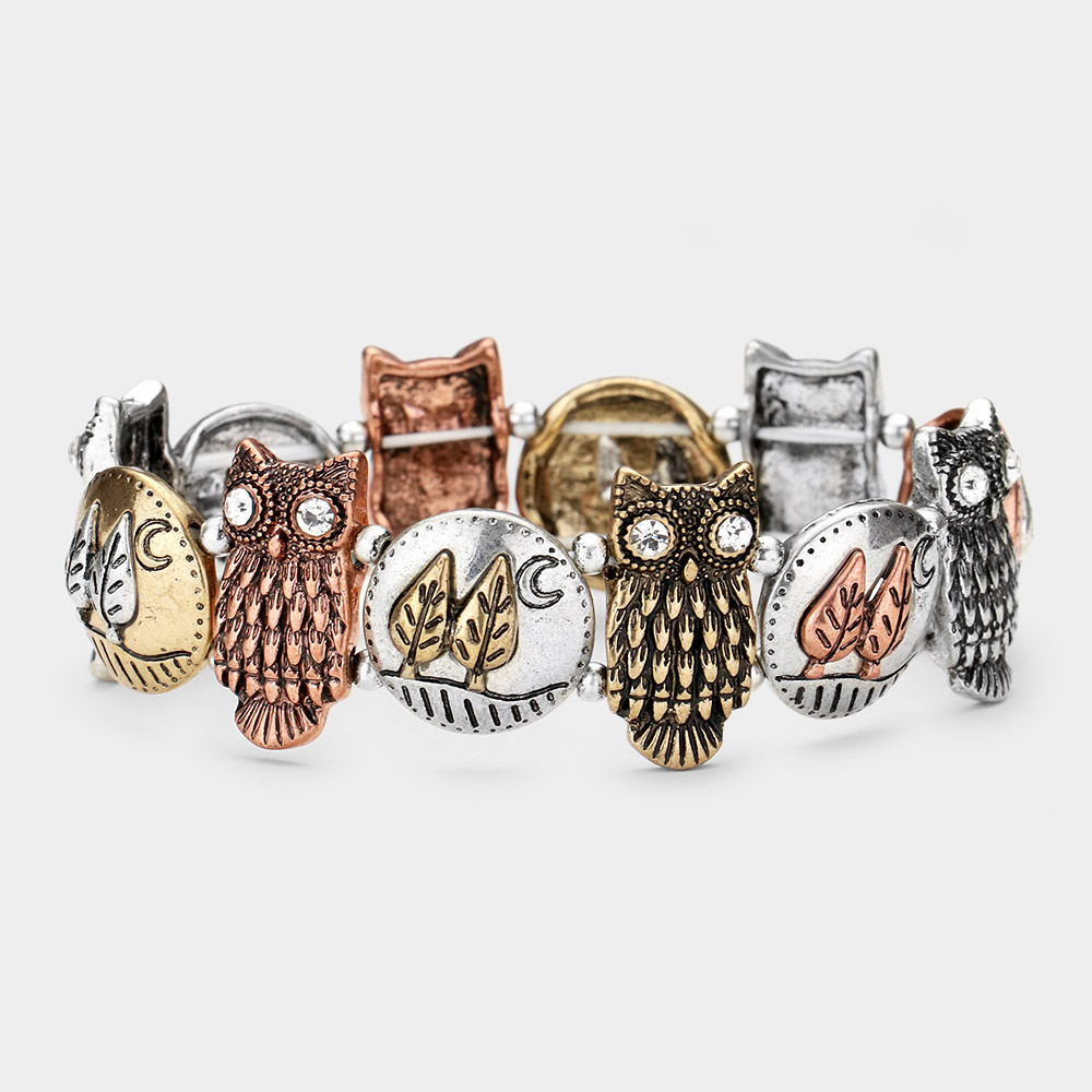3PCS - Rhinestone Embellished Metal Mermaid Charm Stretch Bracelets