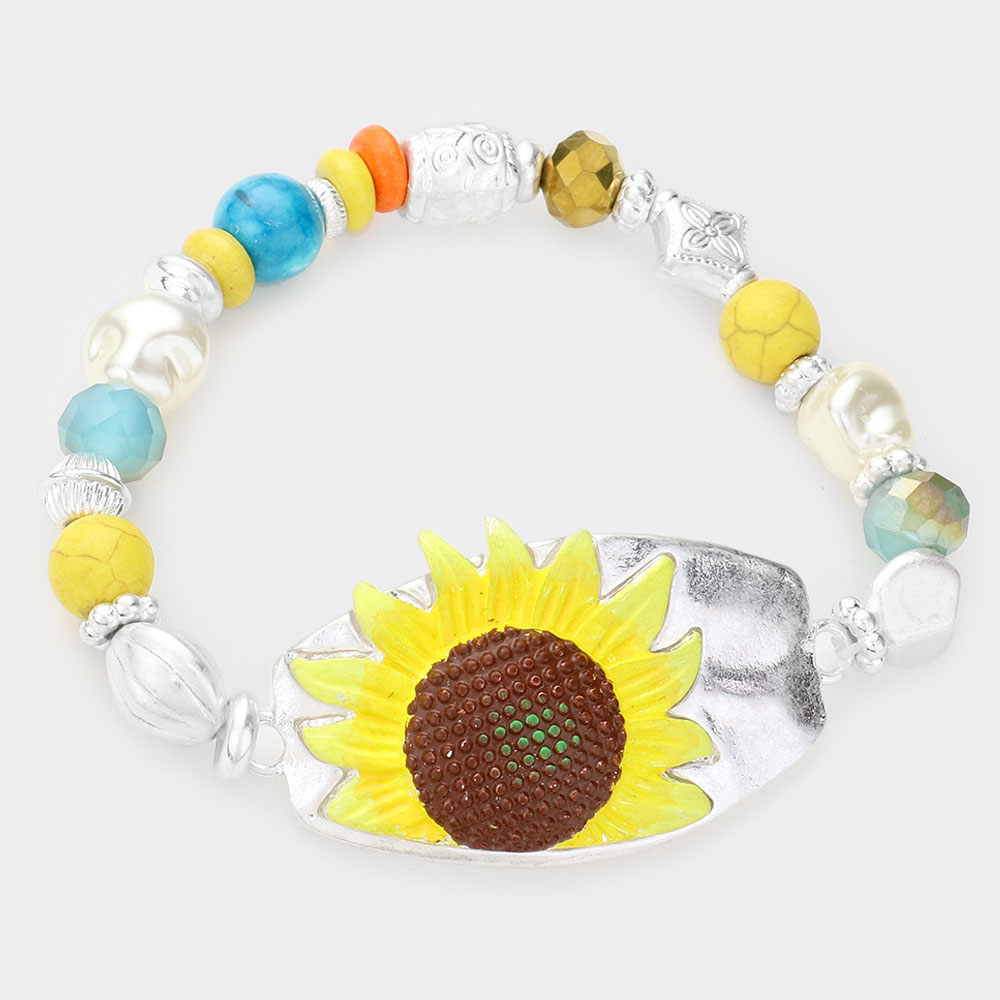 Sunflower Accented Multi Beaded Stretch Bracelet