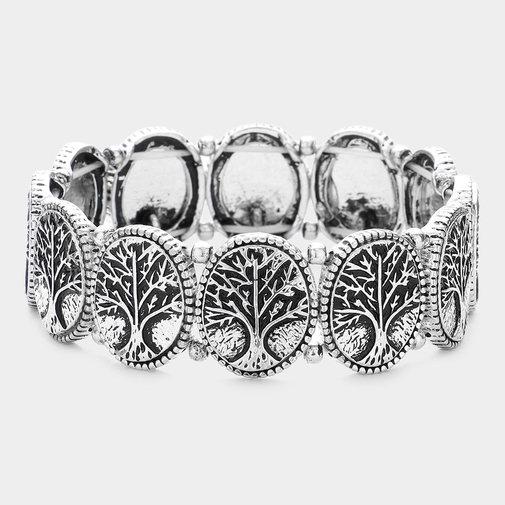 7PCS - Various Beads Beaded Metal Leaf Tree Of Life Charm Pointed Stretch Multi Layered Bracelets
